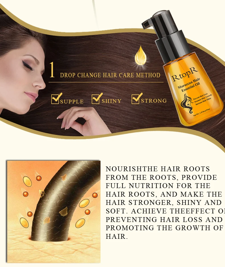 Содержит экстракт марокканского ореха, он был подвергнут передовой мировой технологии экстракции, чтобы эффективно противостоять сухим, обезвоженным и неэластичным волосам. Он сконцентрирован на восстановлении поврежденных кончиков волос, мгновенно разглаживая волосы. В то же время он обеспечивает полноценное питание корней волос, делая волосы более сильными, блестящими, мягкими. Достигает эффекта предотвращения выпадения волос и стимулирования роста волос.
