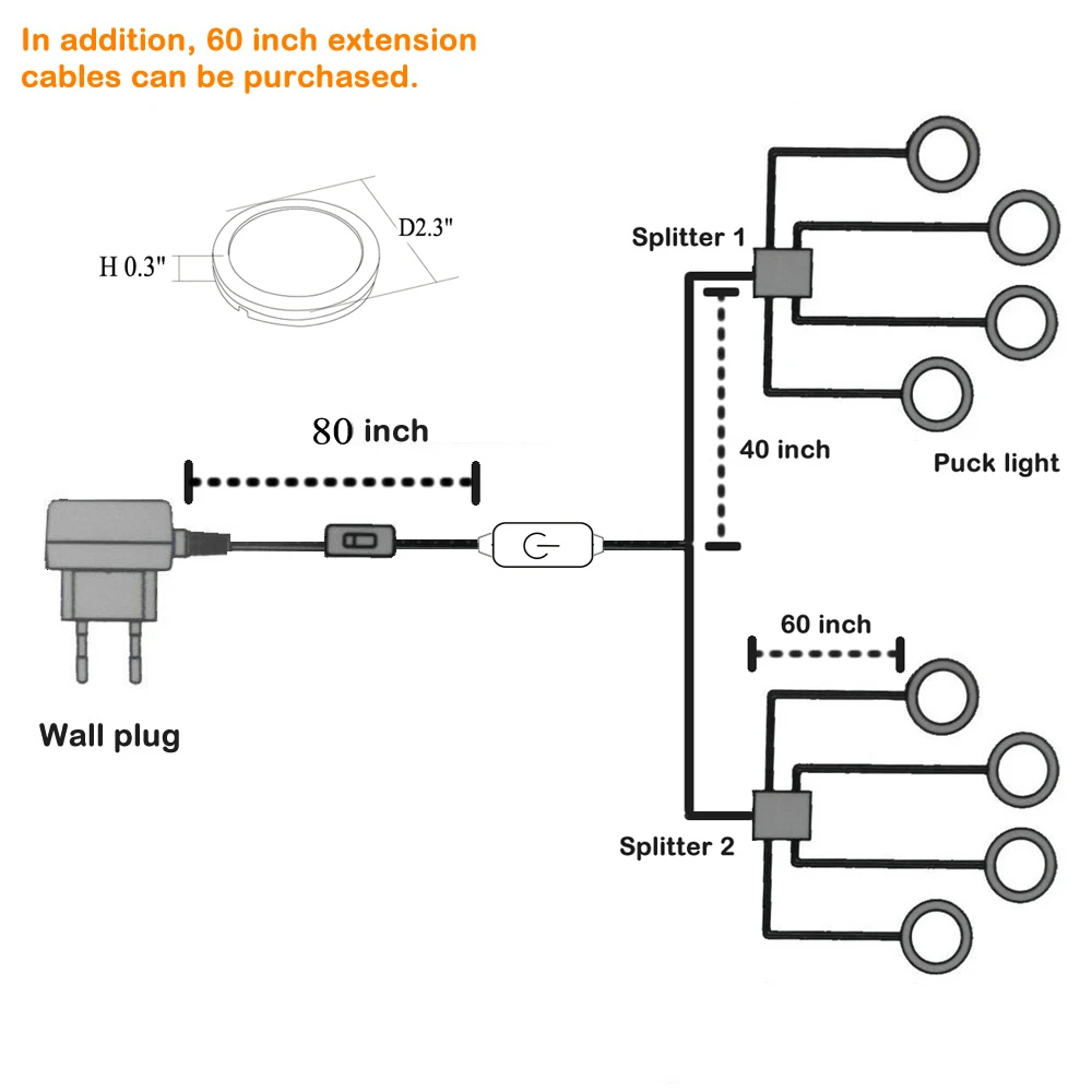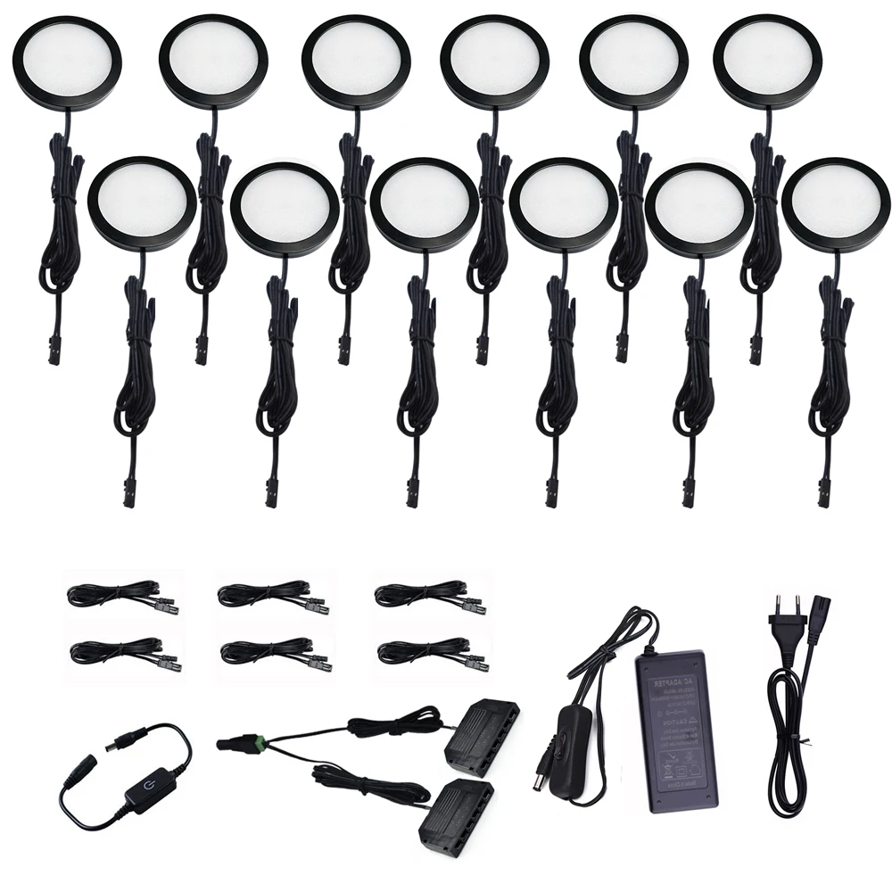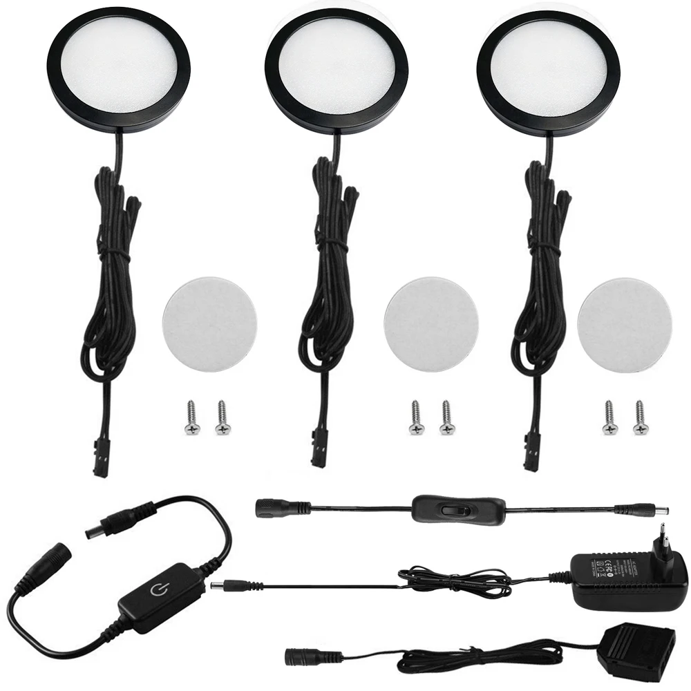 AIBOO, черная светодиодная круглая лампа для шкафа, 346812 дюйма, комплект для освещения столешницы, сенсорный диммер, переключатель для шкафа, кухни