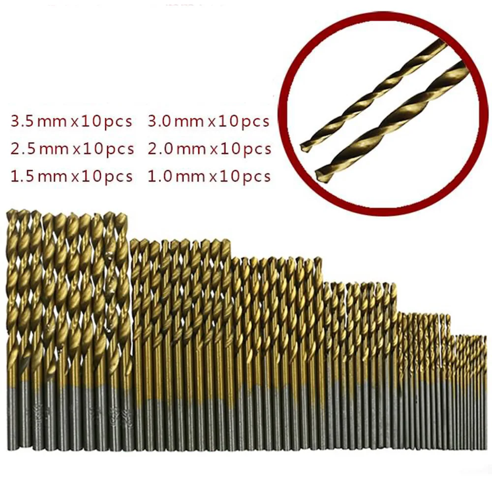 Быстрорежущие высокоскоростные стальные сверла из быстрорежущей стали с титановым покрытием для древесины и пластика, набор спиральных сверл 11, 522, 533, 5 мм, 60 шт.