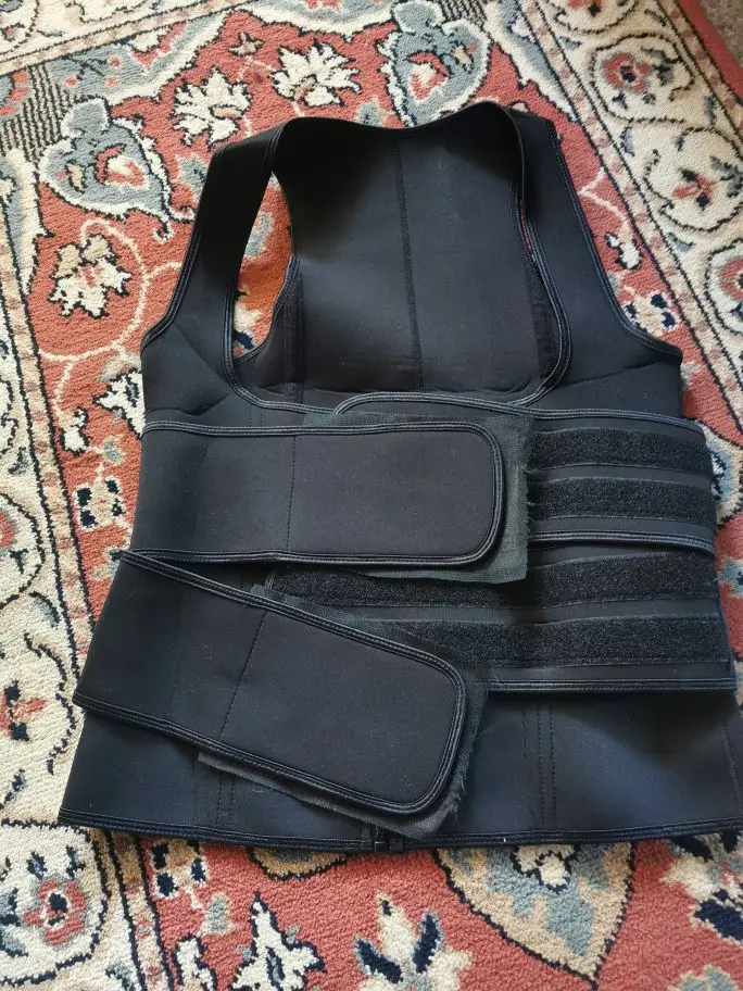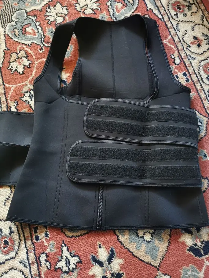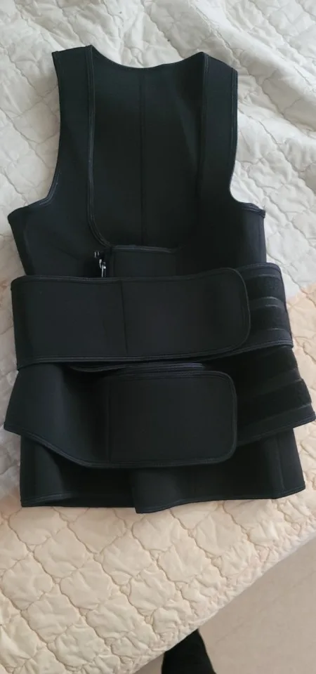 Хорошее качество ценится, хорошие швы, имеет ограниченную эластичность, полосы имеют достаточно липучки, чтобы отрегулировать их, запросить Размер M, он был на пределе между M и L, он плотный, но он поврежден.