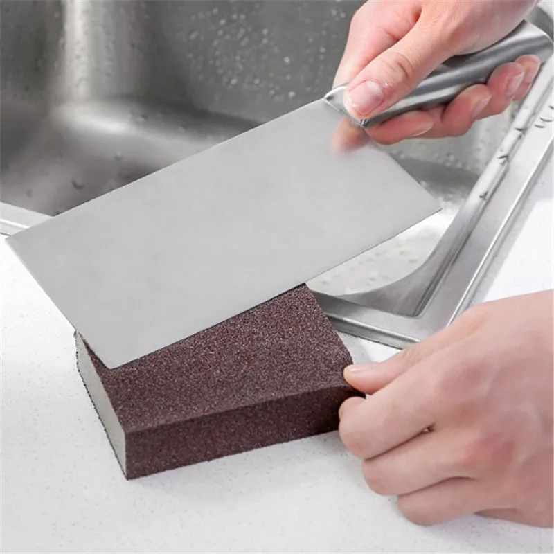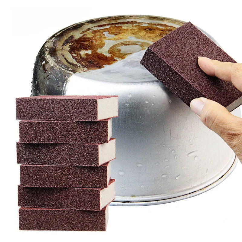 Особенности:100% новый и высокое качествоЛегко чистить кухонную утварьИдеально подходит для матовой чаши, нержавеющей и т. д. Характеристики:Материал: карборунд и губкаРазмер: 100x70x25 ммЦвет: темно-коричневый, как показано на картинке