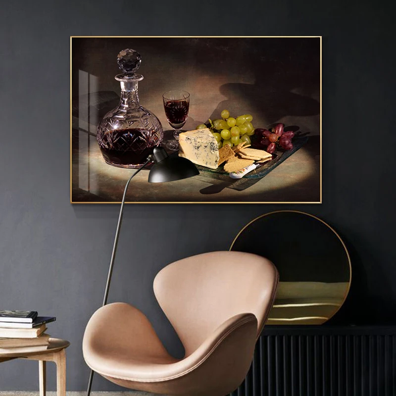 Кухня холст картины винограда вина и сыр Куадрос скандинавский Плакаты и декоративное настенное Искусство Рисунок Еда изображение Гостиная