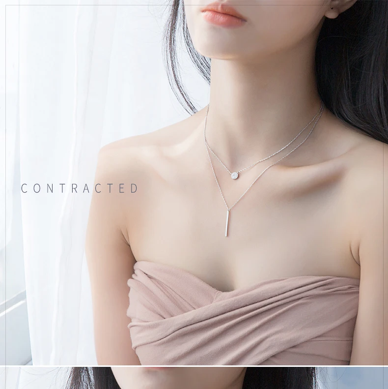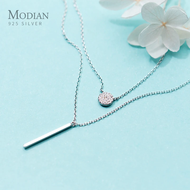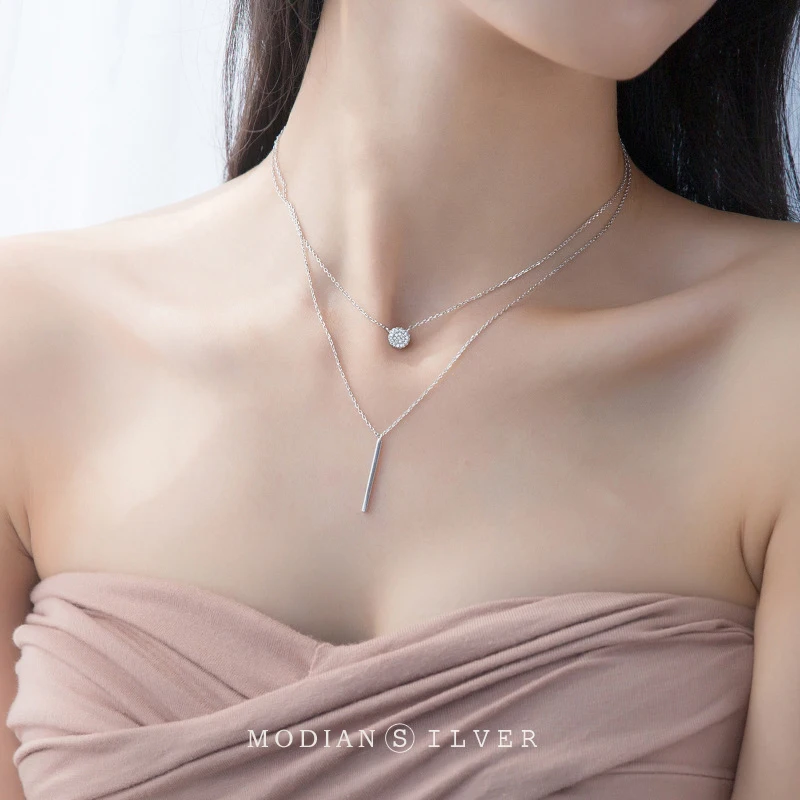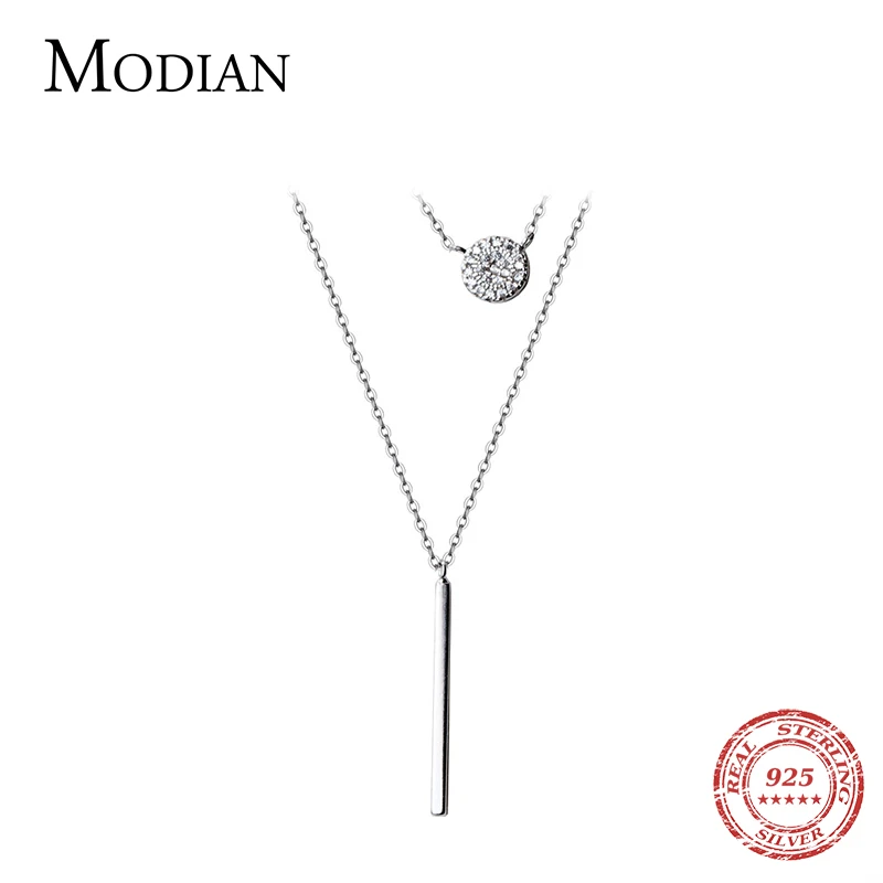 Женское Двухслойное ожерелье Modian из стерлингового серебра 925 пробы с подвеской-палочкой из циркония, изящная бижутерия