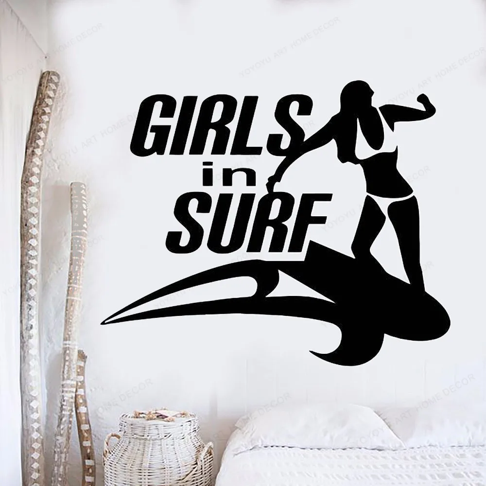 Наклейка на стену для серфинга для девочек, Виниловая наклейка на стену для серфинга, летняя домашняя Настенная Наклейка для серфинга, съемная Настенная роспись JH480