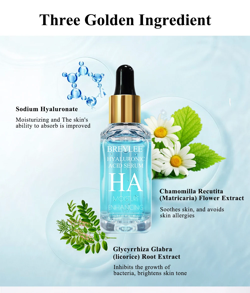 BREYLEE Гиалуроновая кислота Сыворотки увлажнение восстановление сухой увлажняющий антивозрастной впитывается легко лица для ухода за кожей, очищение пор на 40 мл