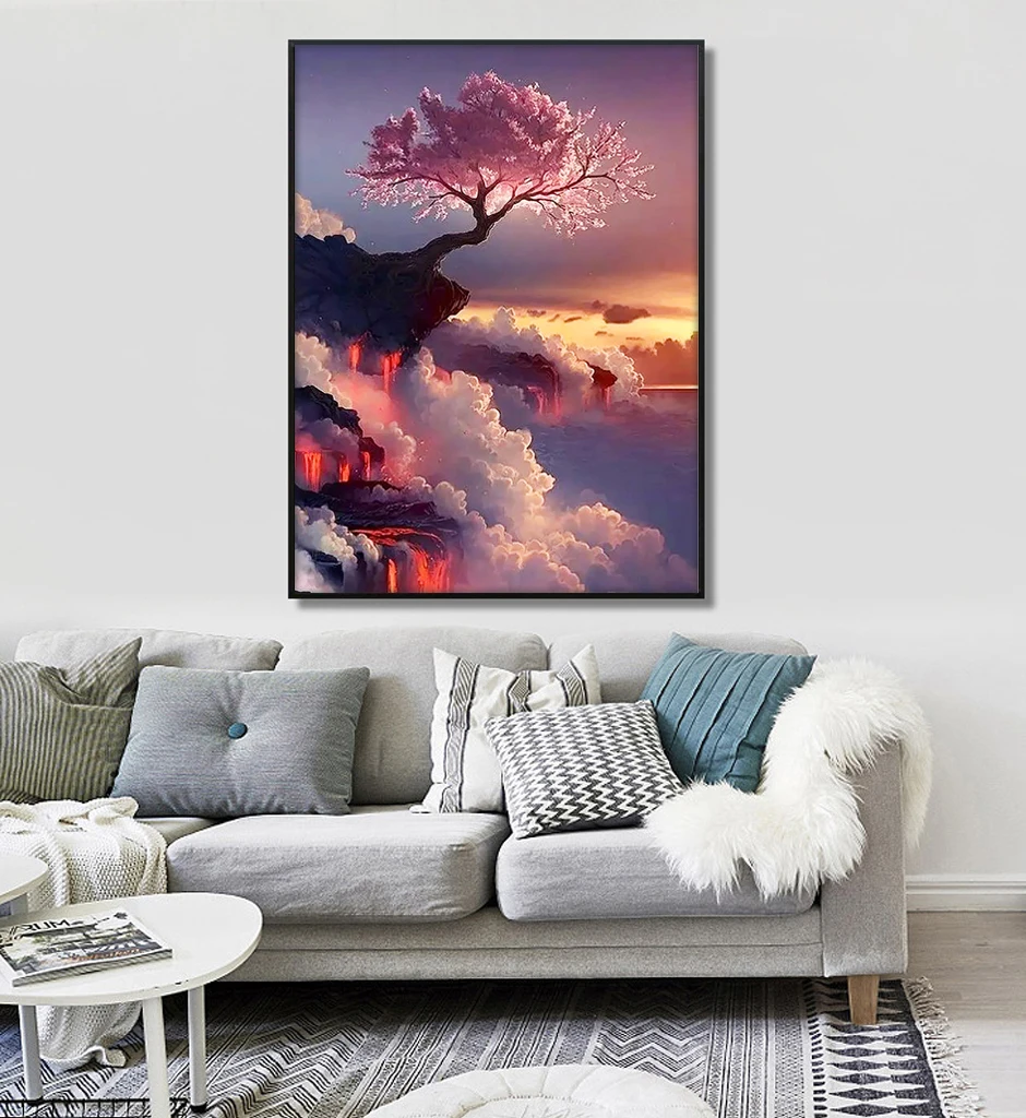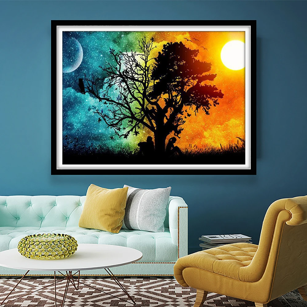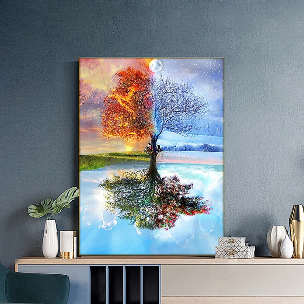 Вышивка крестиком, квадратнаякруглая, 5D, картина для алмазной вышивки с пейзажем, с деревом, Декор для дома