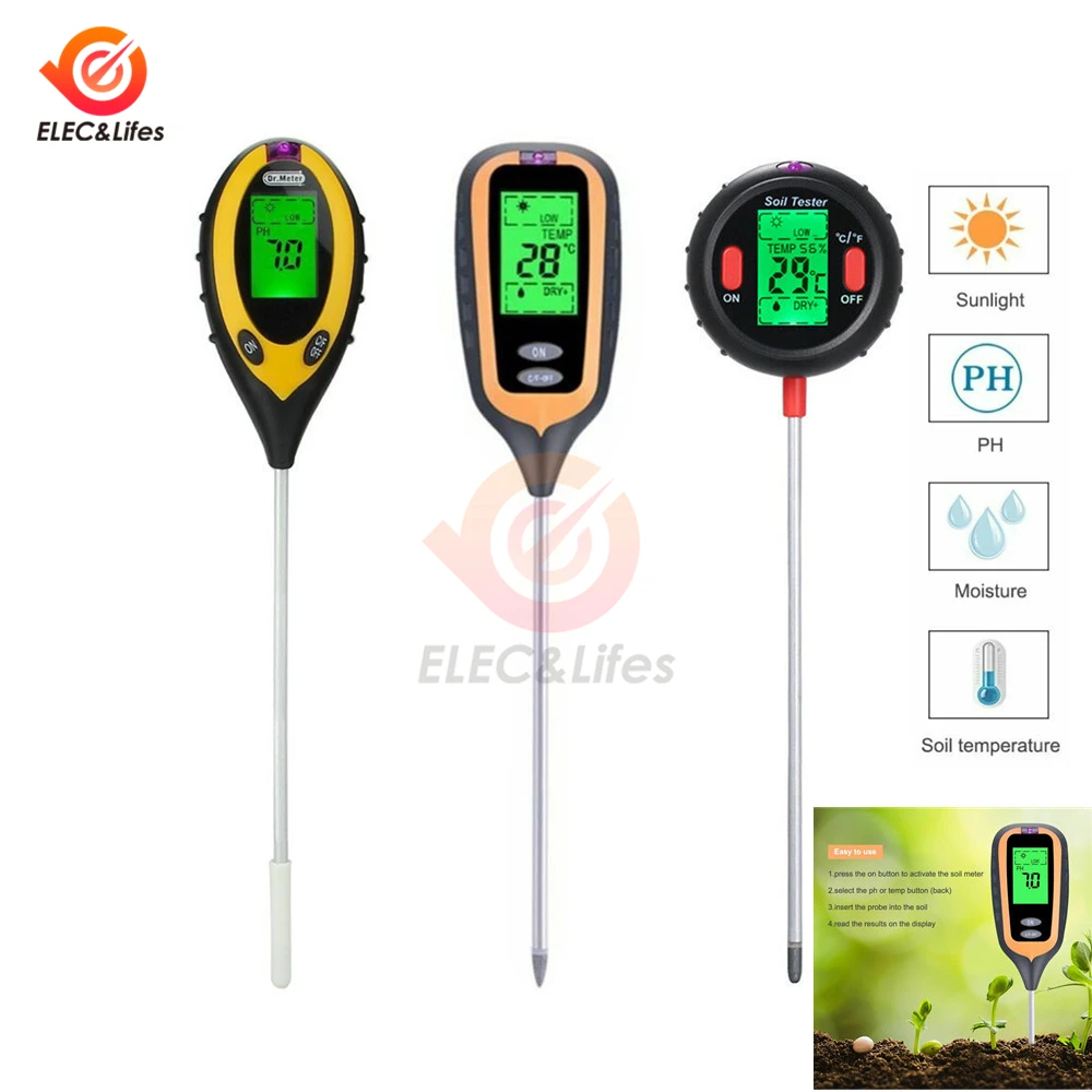 4 в 1 PH Измеритель влажности почвы: