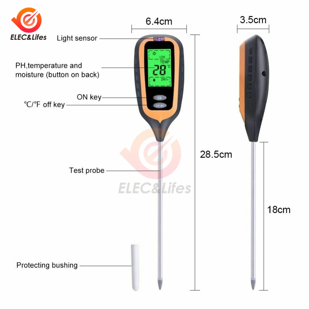 Электронный дисплей 4 в 1 АНАЛИЗАТОР почвы-это новейшее устройство для измерения скорости почвы, в основном для проверки PH, влажности, температуры и интенсивности растений, светильник использование углеродной батареи 9 В (не входит в комплект). Этот инструмент проходит через параметры измерения жидкокристаллического дисплея. Прибор также имеет низкую индикацию мощности и функцию автоматического отключения питания. Экономит время и энергию, высокая эффективность. Этот инструмент подходит для цветов и посадка травы, озеленение сада.