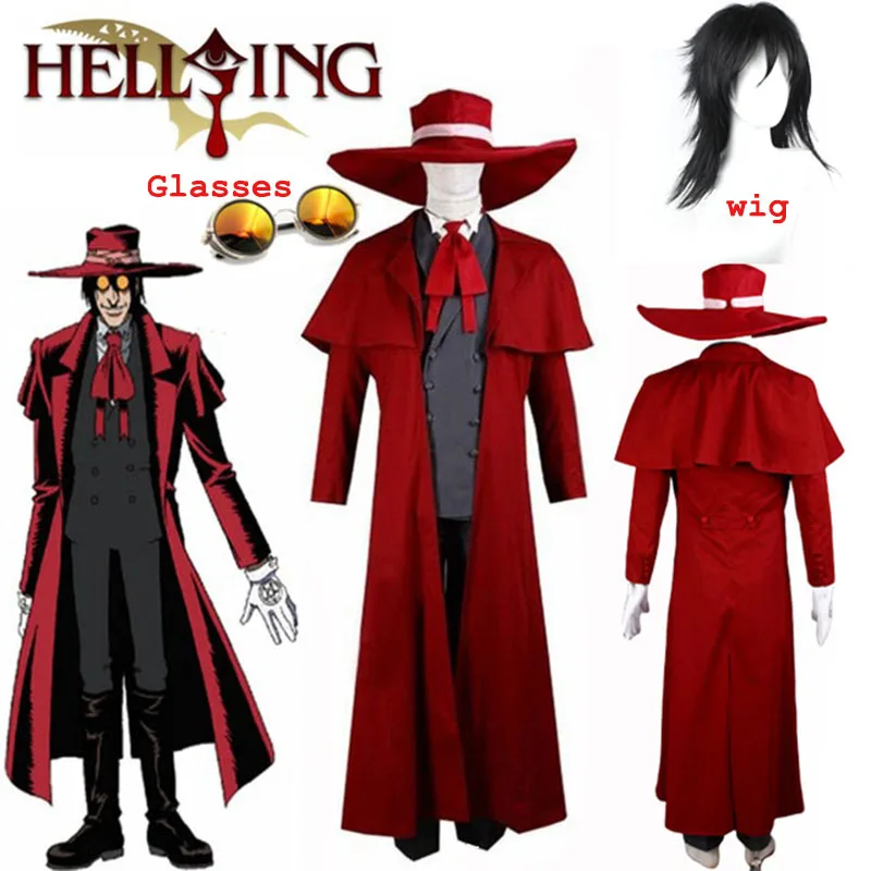 Костюм для косплея охотника вампира, Хеллсинг Алукард, крутой мужской костюм с хлопковой подкладкой, длинное пальто, лучшая одежда, очки