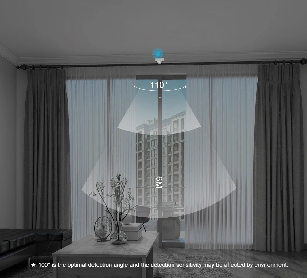 Может обеспечить расстояние обнаружения до 6 м и угол до 110 °, когда датчик работает, что обеспечивает Обнаружение подозрительного движения возле вашего дома даже раньше.