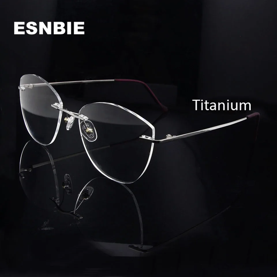 Оправа для очков титановая без оправы, женские ультралегкие Рецептурные очки без оправы, оправа кошачий глаз с бабочками, оптическая оправа для близорукости