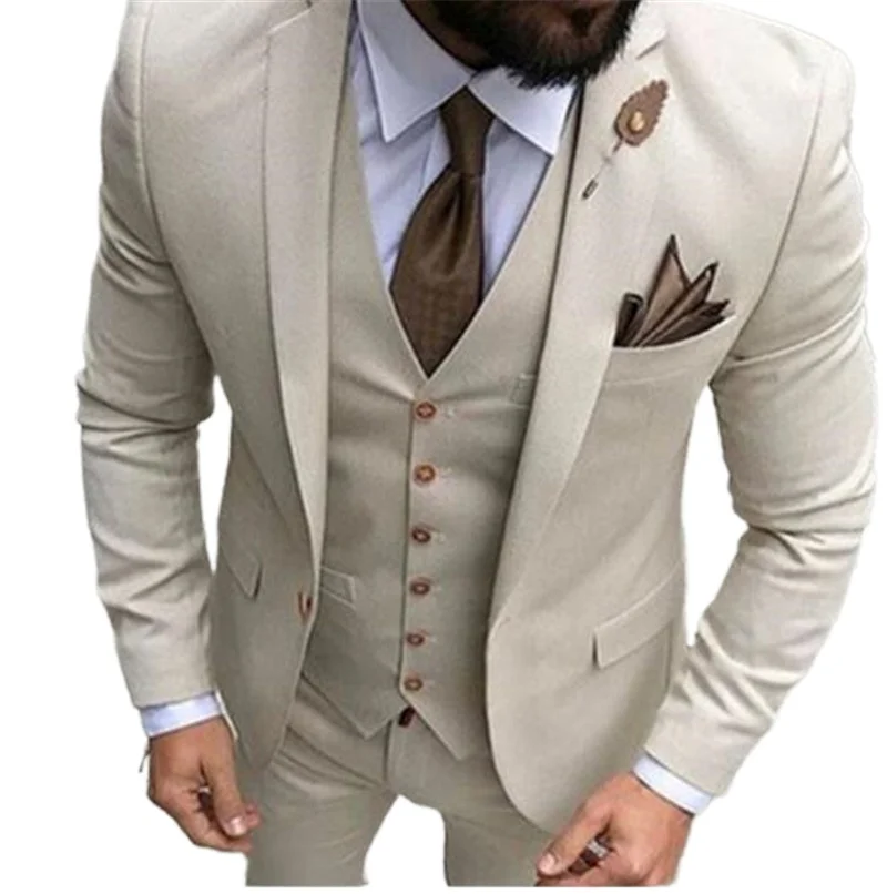 Формальный последний дизайн пальто брюки бежевый мужской Выпускной смокинг зауженный крой 3 шт свадебные костюмы жениха на заказ Блейзер Terno Masuclino Q62