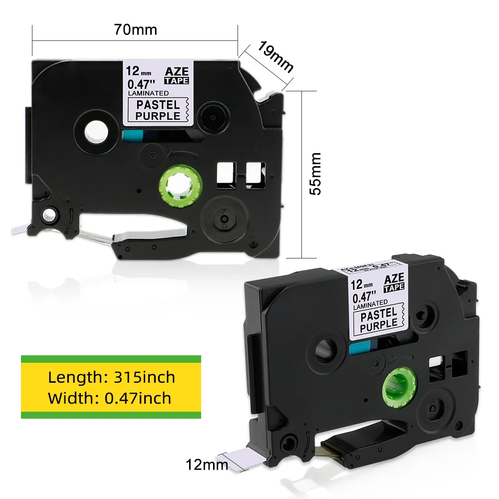 AZe-MQF31 (совместим с Brother TZe-MQF31, черный на пастельных фиолетовых)