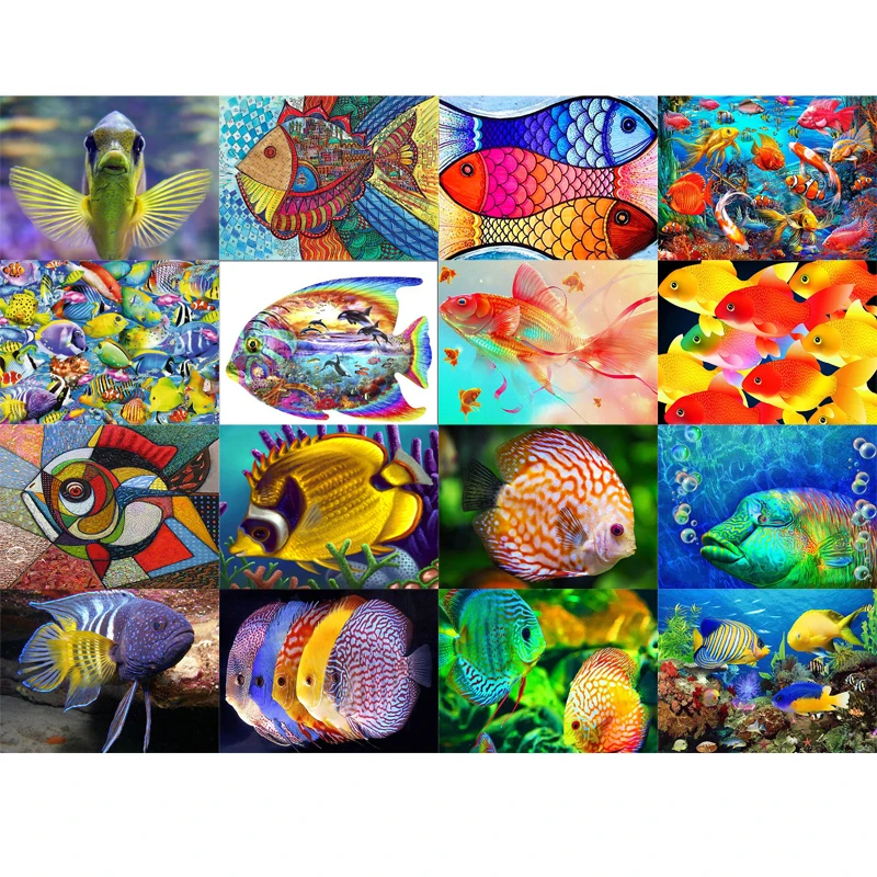 Картина из круглых страз 5d "сделай сам", картина с рыбками для демонстрации, вышивка крестиком с изображением океана, мозаика для стразы, домашний декор