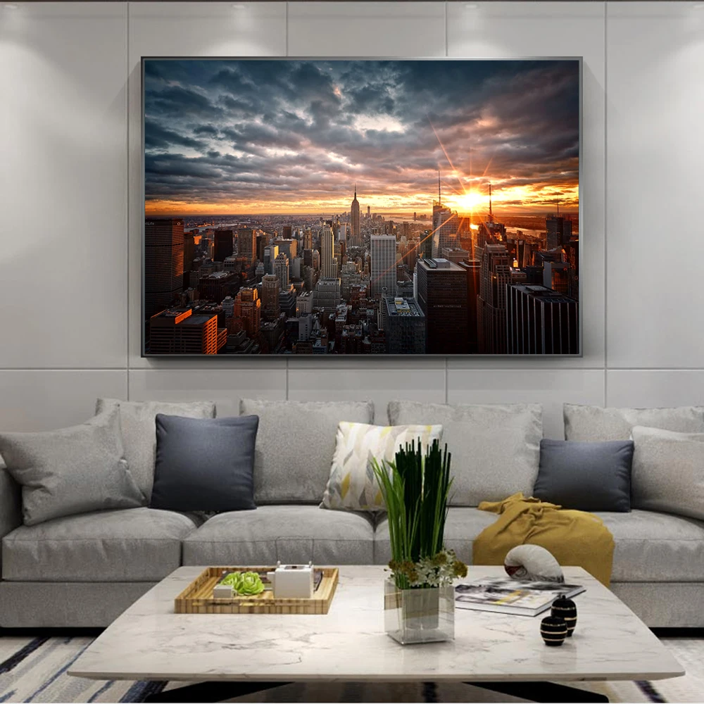 Нью-Йорк закат вид холст настенные картины художественные плакаты и принты Skline Манхэттен настенные картины украшение дома