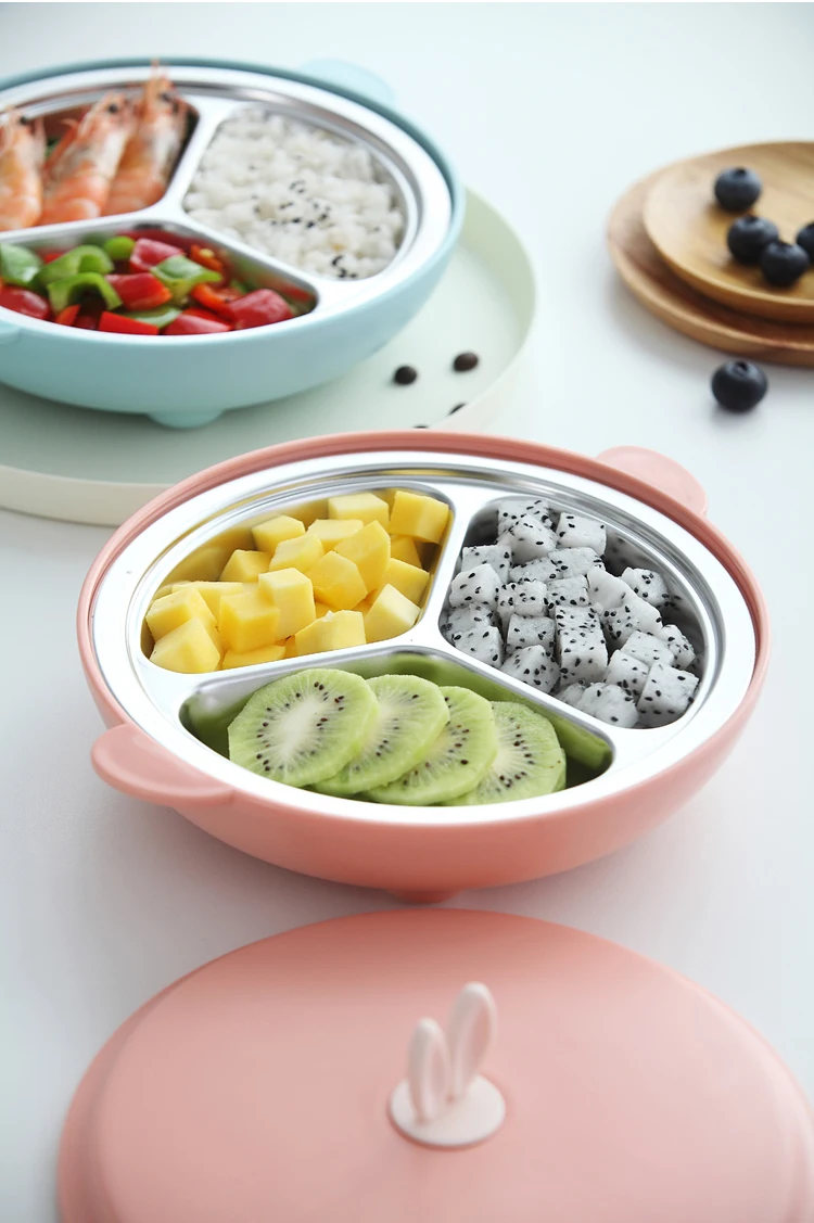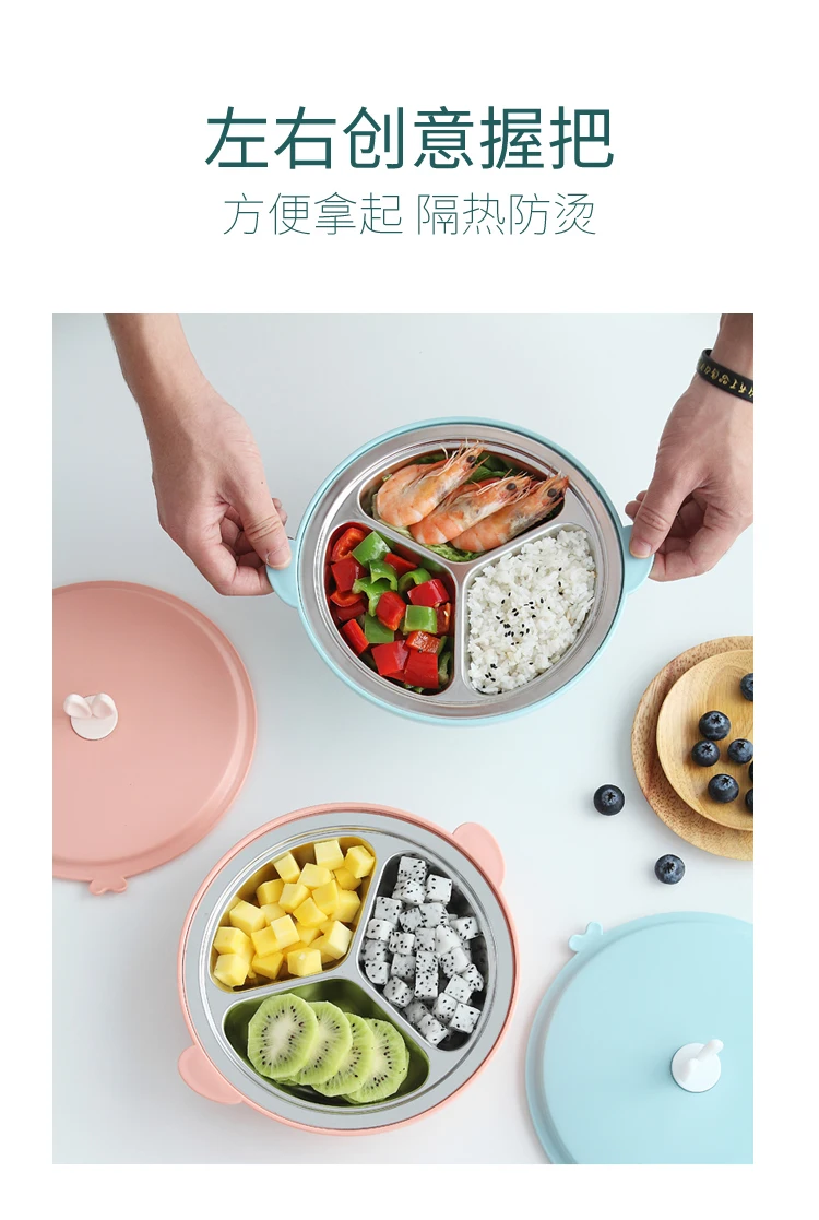 Детская изоляционная тарелка из нержавеющей стали, Нескользящая силиконовая тарелка для кормления, посуда для экологически чистого кормления