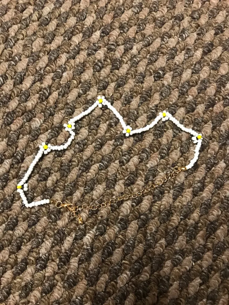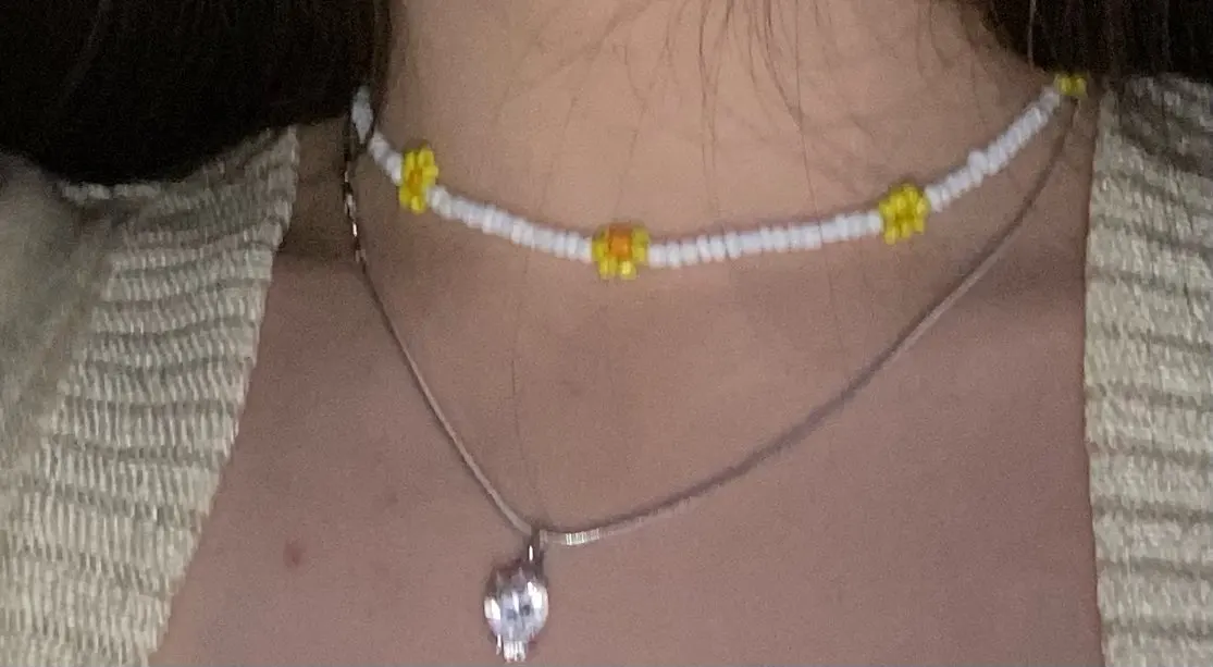 Ожерелье подошло, но цветы кривые. Не могу носить его, потому что он не выглядит хорошо