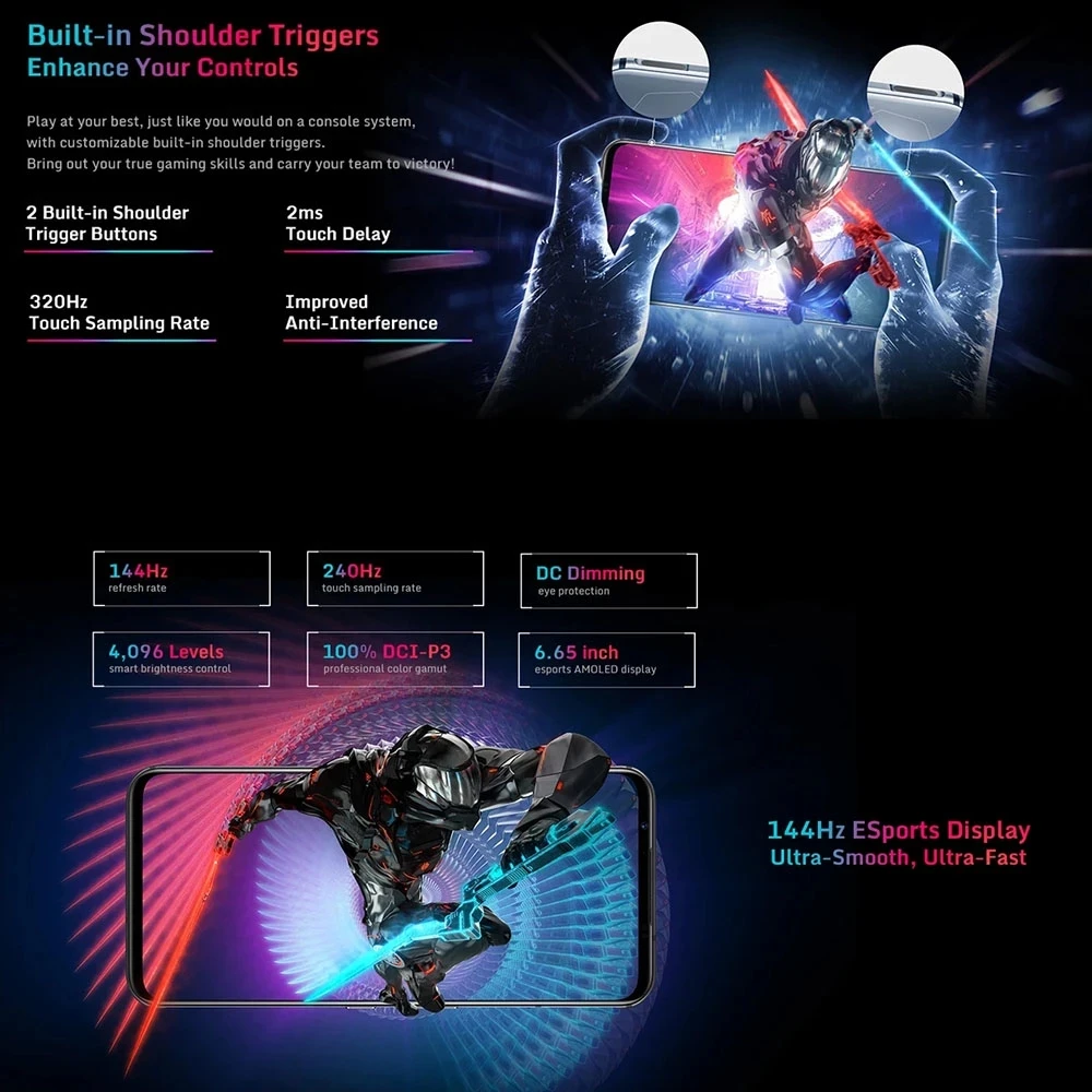 Смартфон Nubia Red Magic 5S, игровой, 16 ГБ ОЗУ, 256 Гб ПЗУ, Snapdragon 865, 144 Гц, 64 мп, 4500 мАч, 55 Вт, быстрая зарядка
