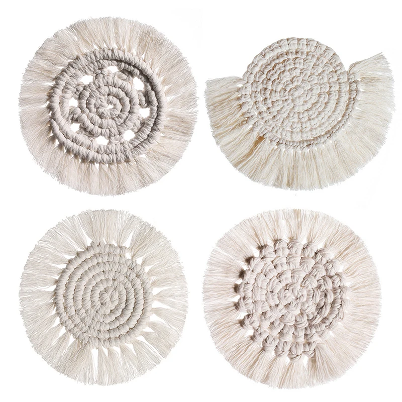 Nordic макраме под горячее, подставка под кружку в богемном стиле скатерть чашки Coaster Pad Чистая медь ручной работы хлопковая оплетка изоляции коврики сервировочный поднос