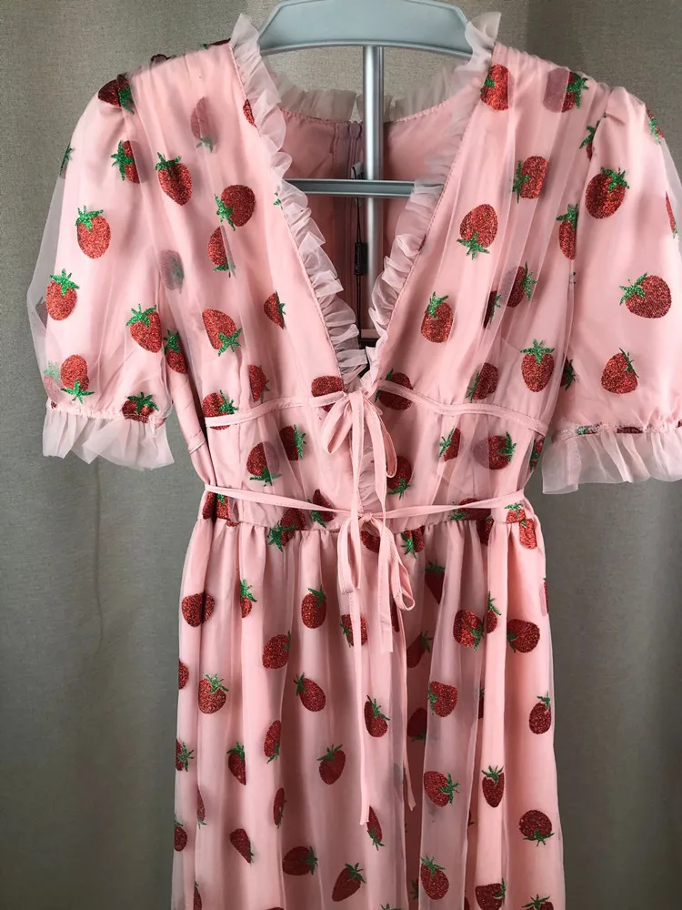 Это очень красиво, но клубника приносит клей, и они прилипают друг к другу с тех пор, как платье снаружи.
