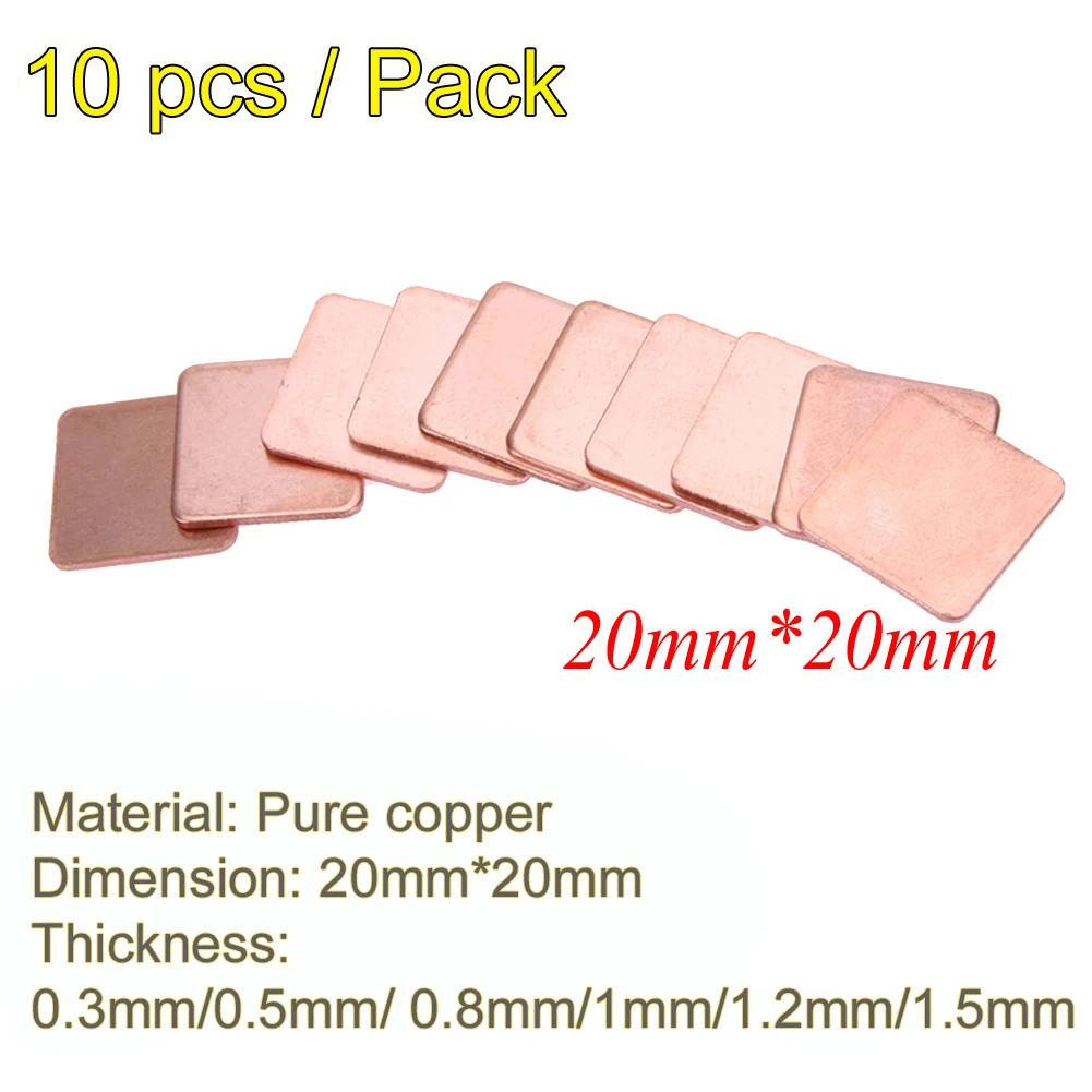 10 шт 20 мм x 20 мм 0,3 мм0,5 мм 0,8 мм1 мм1,2 мм теплоотвод медна...
