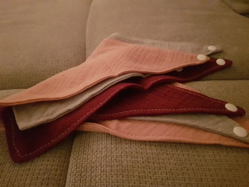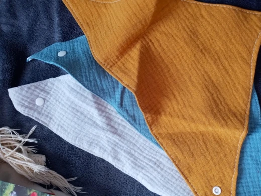 Классные слюнявчики, использую как шарфики) Как на картинке) первый раз заказала 2, один кинули в ящик, второй был потерян на русской почте (( сказали что типо отдали мне уже) заказала ещё раз, пришло очень быстро за 10 дней с другими вещами в Почтомат в магазине 5ка рядом с домом) Супер) спасибо)