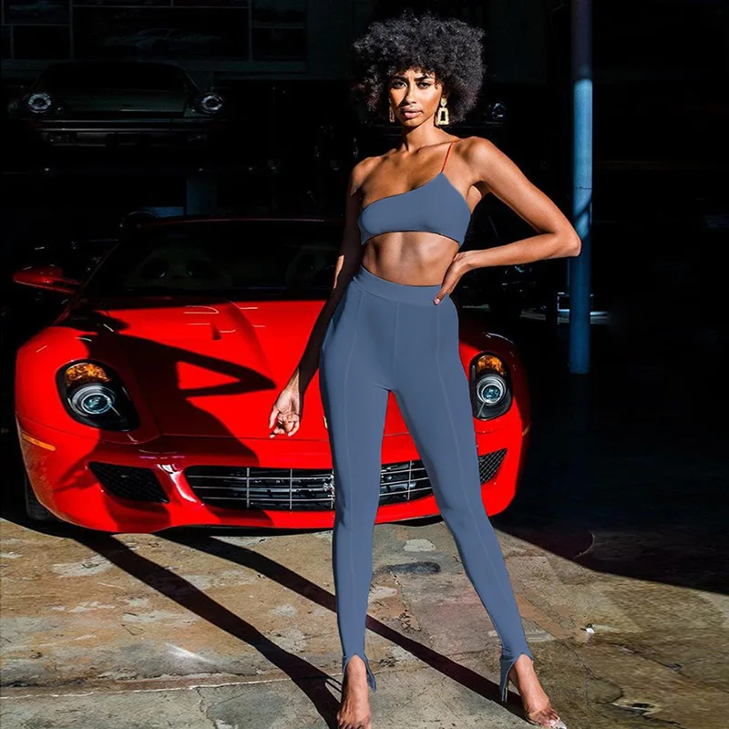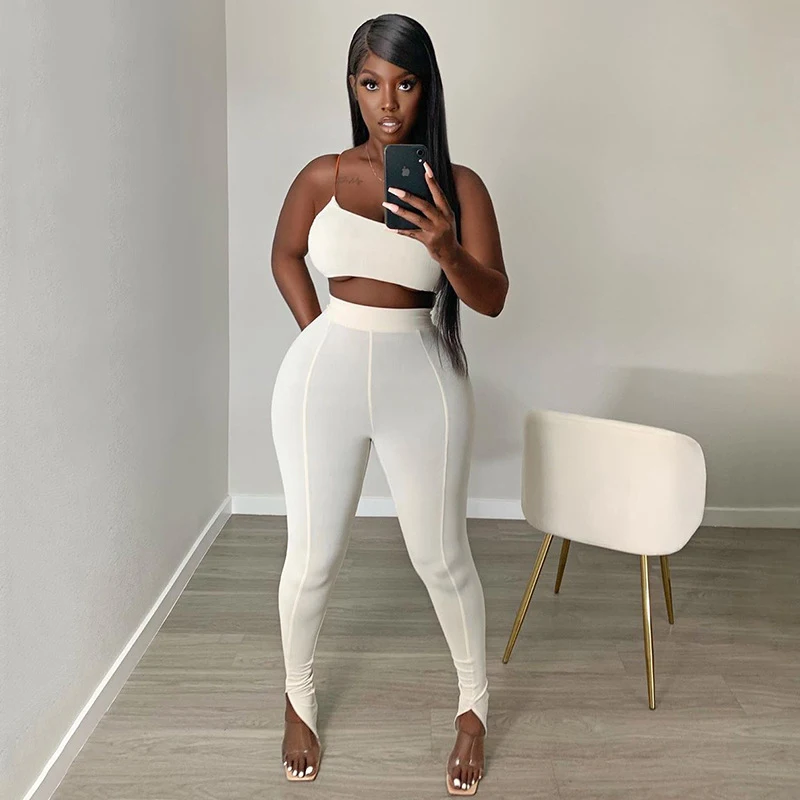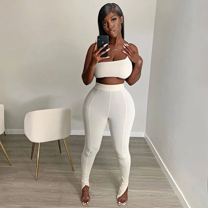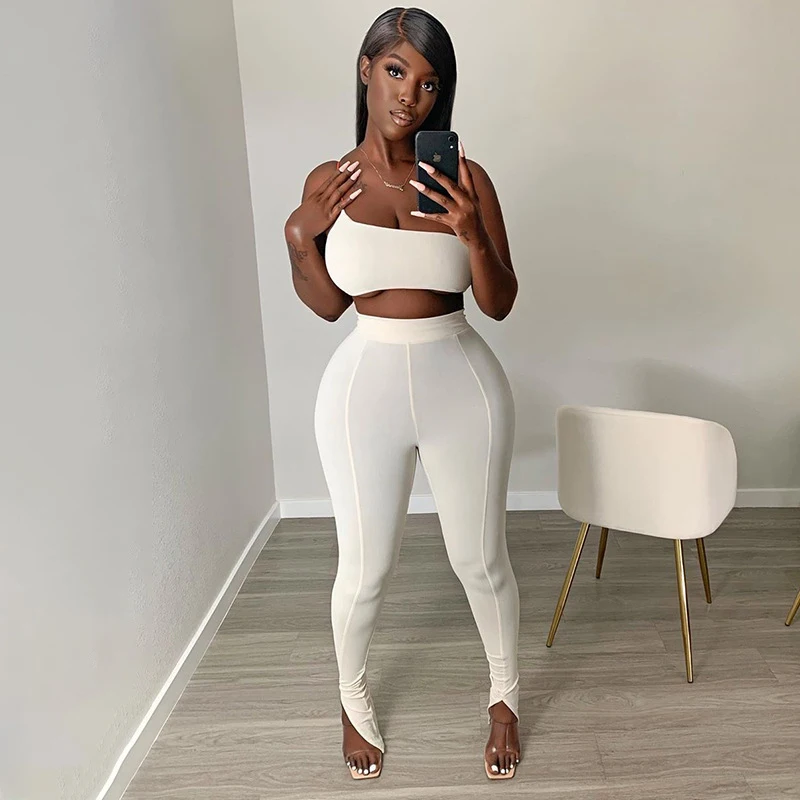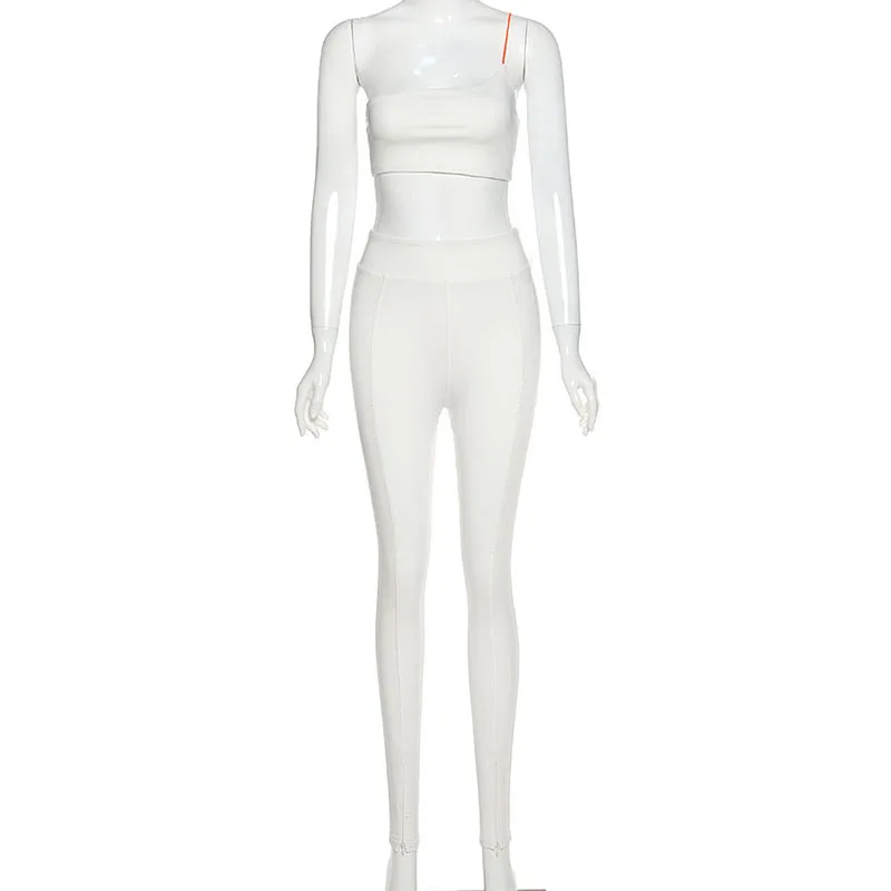 Женский спортивный повседневный комплект Skinn, белый облегающий комплект из двух предметов, топ без рукавов и брюки с Боковым Разрезом