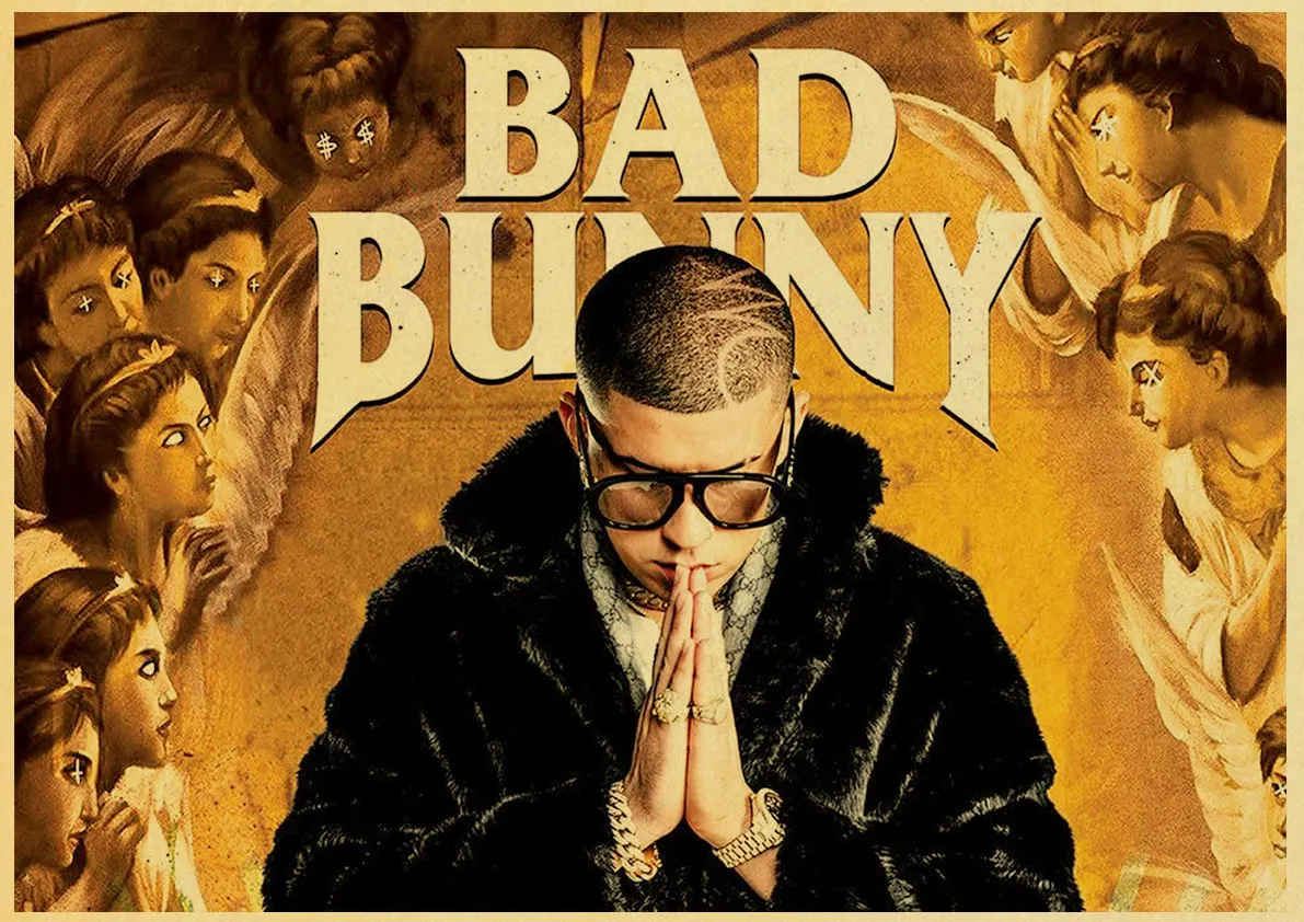 Певица поп звезда Рэпер Хип-хоп плохой кролик плакат музыка живопись искусство наклейки на стену для гостиной дома клуб бар Кафе Декор