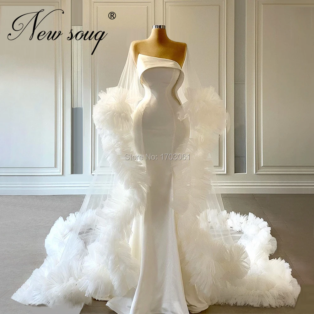 Роскошные белые вечерние платья-русалки для свадьбы 2020, вечернее платье в арабском стиле с многоярусным рисунком, праздничные платья с иллюзией, халат из Саудовской Аравии