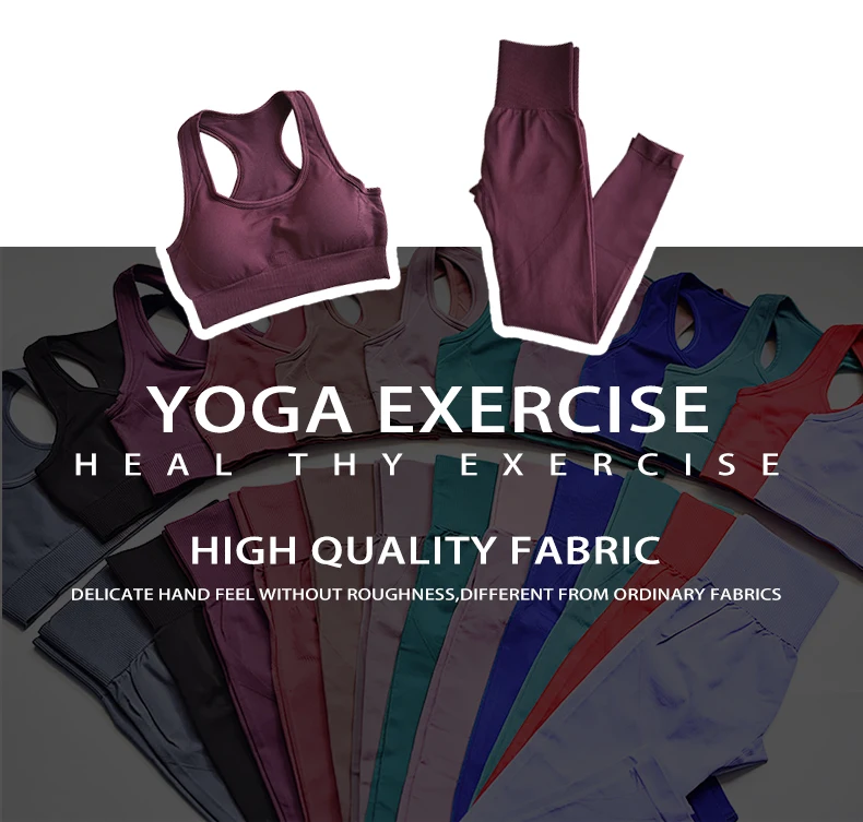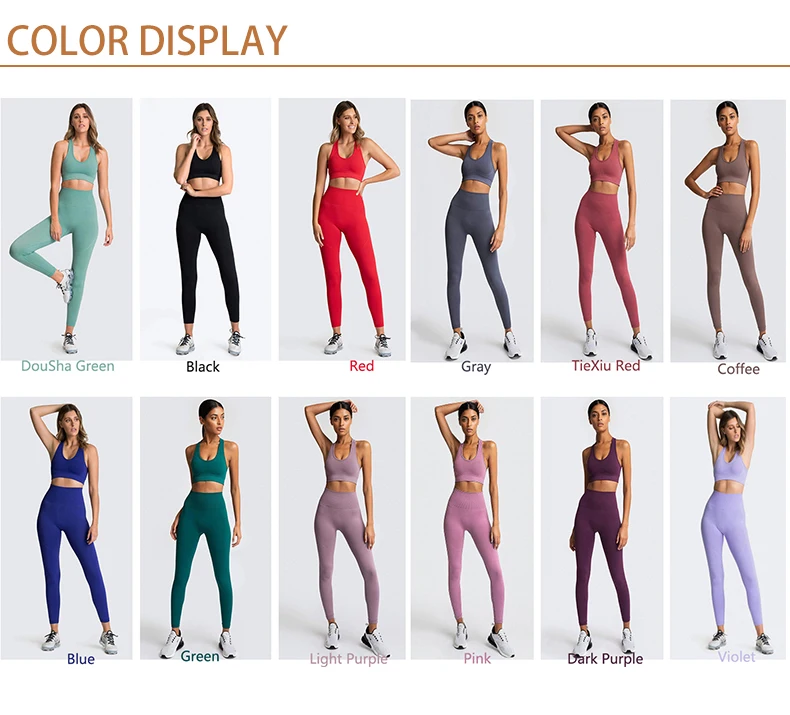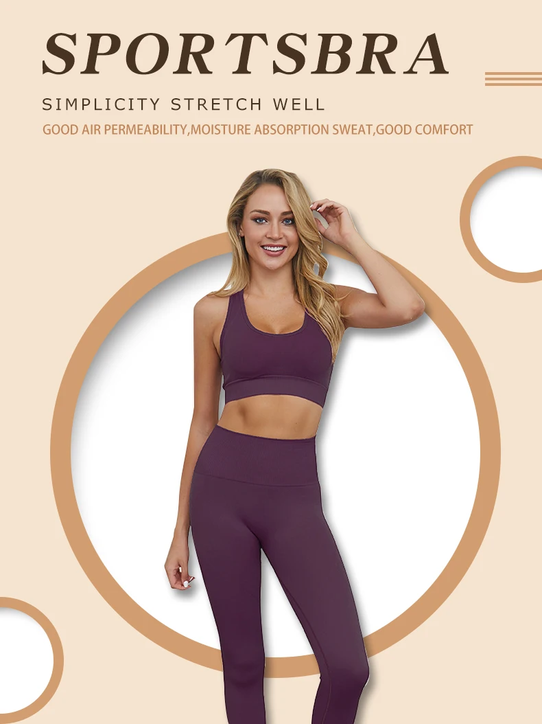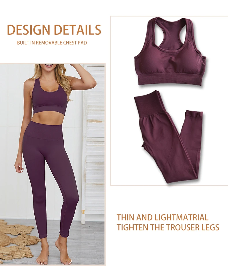 Комплект спортивный женский бесшовный из 2 предметов, леггинсы и топ одежды для йоги