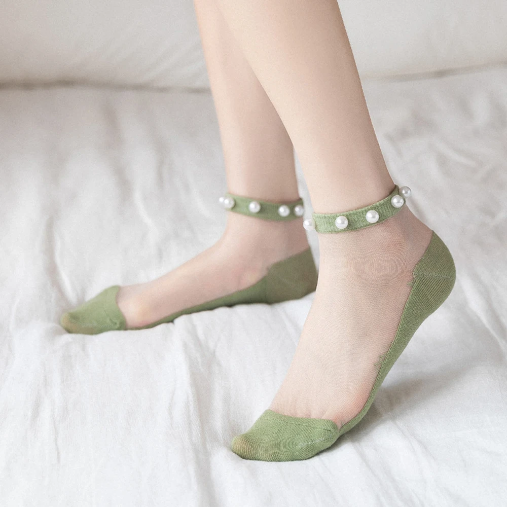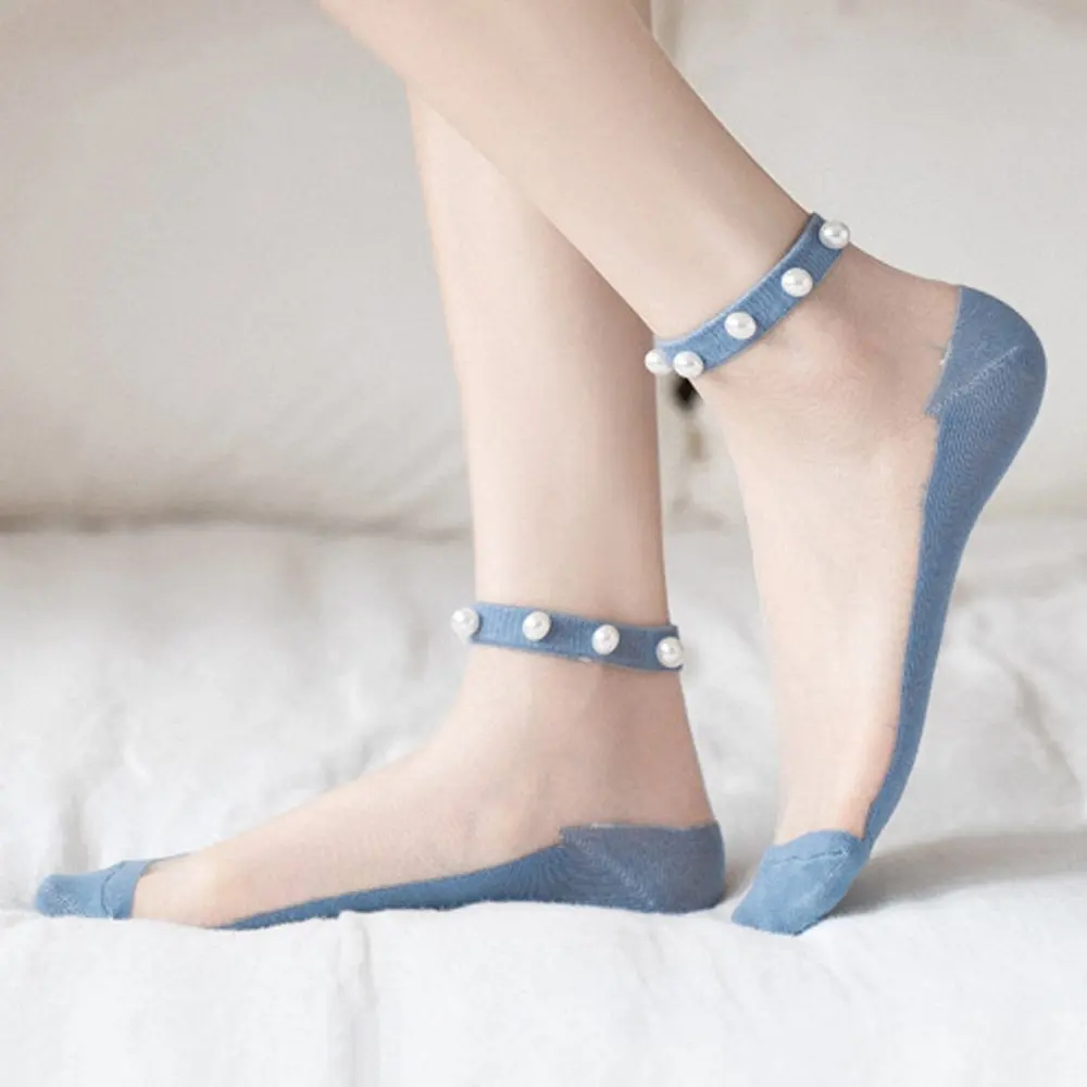 Носки женские прозрачные с жемчугом, тонкие Дышащие Короткие одното...