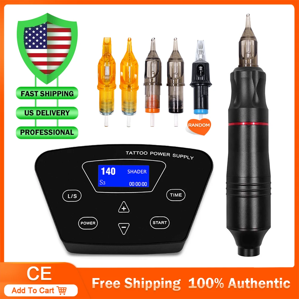 Тату-машинка наборы: 1x ручка для татуировки (CTG-003) 1x с татуировками электропитания 1x3,5 мм-6,3 мм штекер шнура 5x картридж иглы Ручка для нанесения татуировок: 1x ручка для татуировки (CTG-003) 1x Шнур 3x картридж иглы