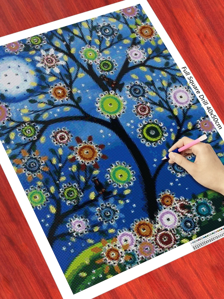 Алмазная живопись, красочные цветы, полная квадратная Алмазная вышивка, вышивка крестиком, пейзаж, дерево, сделай сам, круглые элементы