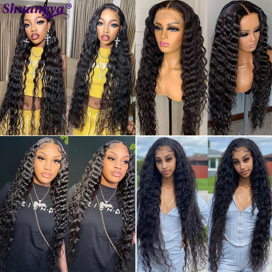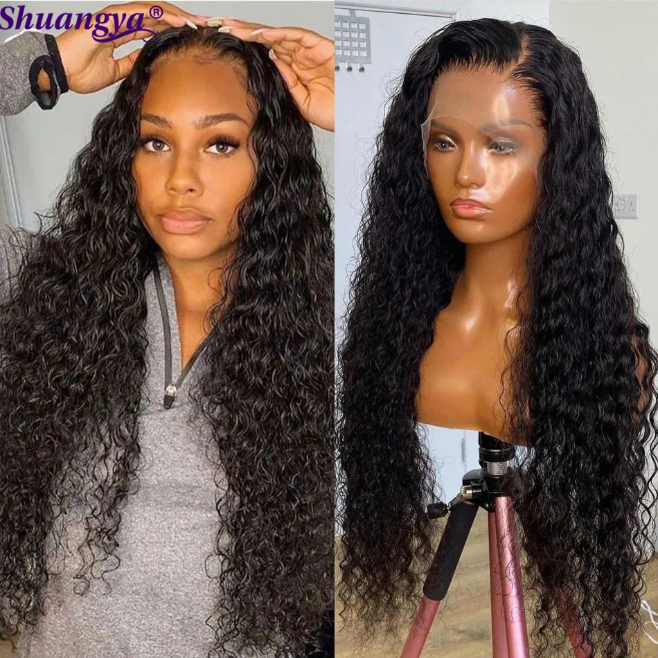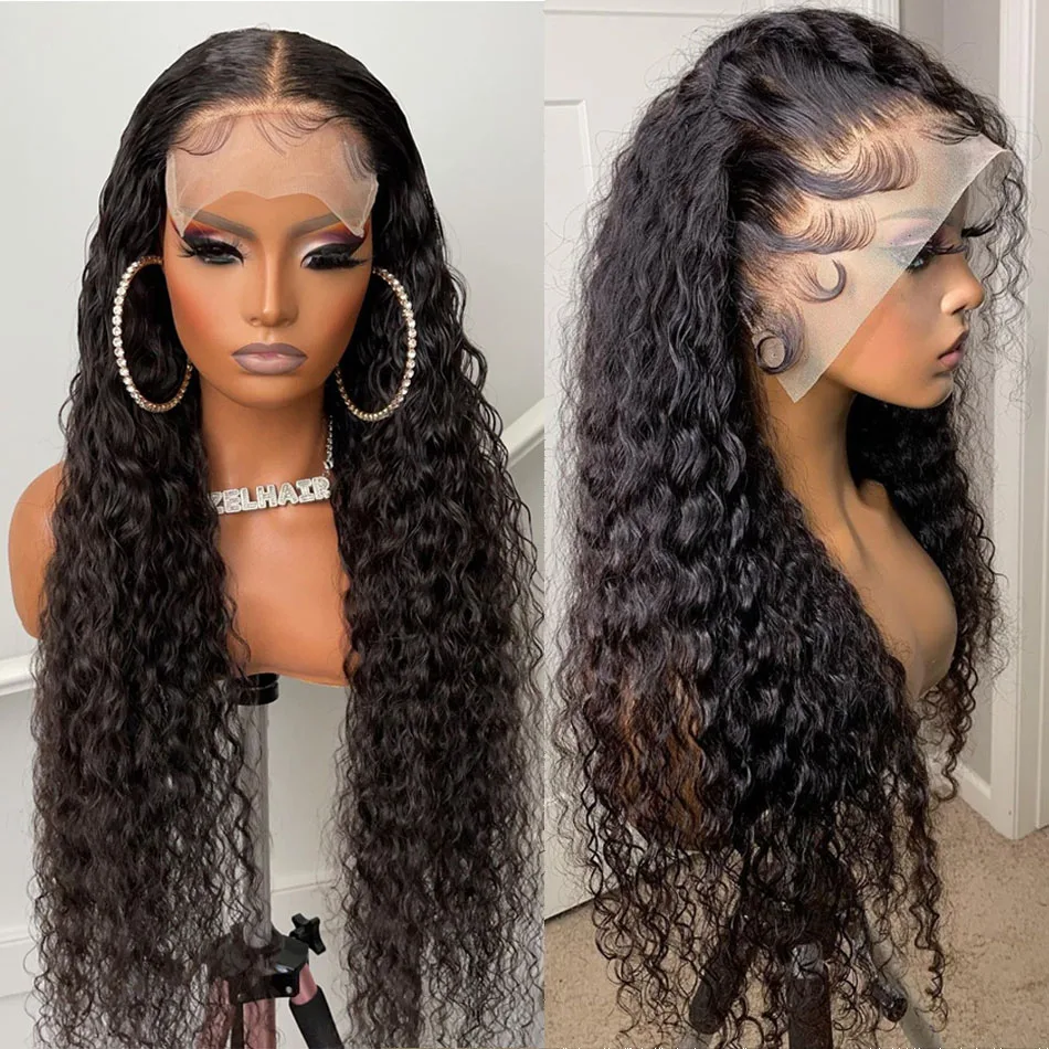 28 30 дюймов, глубокий волнистый кружевной передний парик, 100% Remy, человеческие волосы, водная волна, кружевные парики, бразильский глубокий кудрявый парик HD 5x5, парик на шнурке