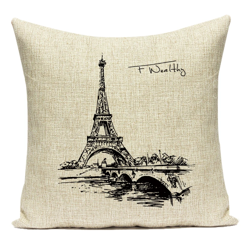 Квадратные наволочки для подушек, наволочки с рисунком Парижа, Эйфе...