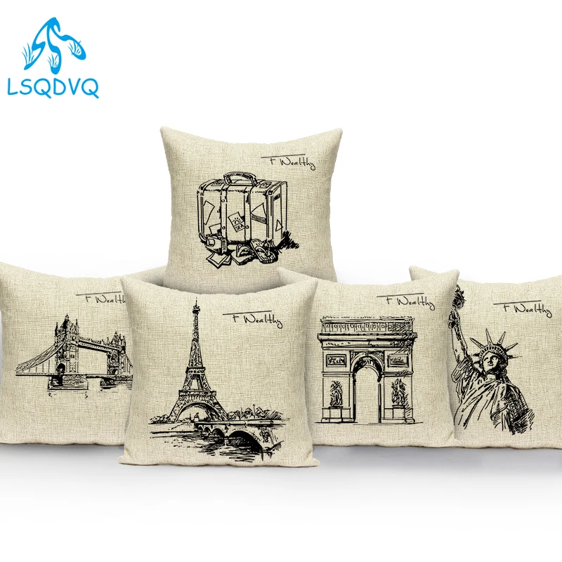 Nordic Стиль черный, белый цвет Liberty Полотенца здание живописный полиэстер декоративные подушки для дивана домашний Гостиная