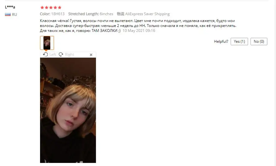 Ерундовая штучка. Скорей всего будет валяться. Заказала ради интереса, носить не буду. Криво пострижена чёлка. Но это лишь моё мнение, может кому-то и подойдёт. Доставка чуть больше месяца на Дальний Восток. С продавцом общаться не было необходимости, так как в общем-то, вещь мне не была нужна и я её срочно не ждала.