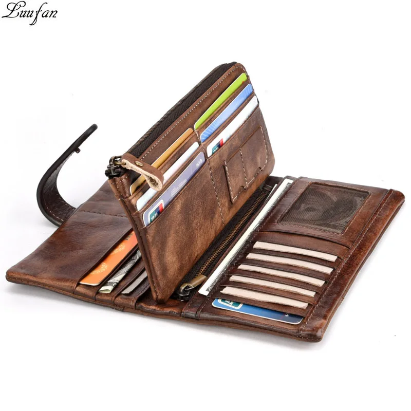 Luufan, Винтажный Длинный кошелек из натуральной кожи с блокировкой RFID, для мужчин и женщин, держатель для карт, кошелек с застежкой, деловой кошелек, 2 складки, клатч, кошелек