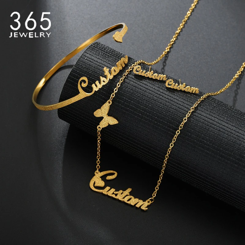Модный персонализированный набор из матовой нержавеющей стали, специальная именная табличка с короной-бабочкой, ожерелье для вечеринки для девочек, ювелирные изделия, подарок