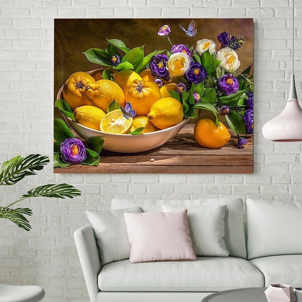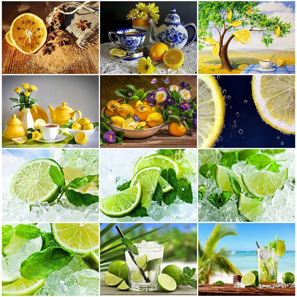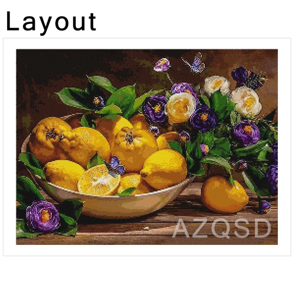 Алмазная мозаика AZQSD "сделай сам" с изображением лимона, фруктов,...