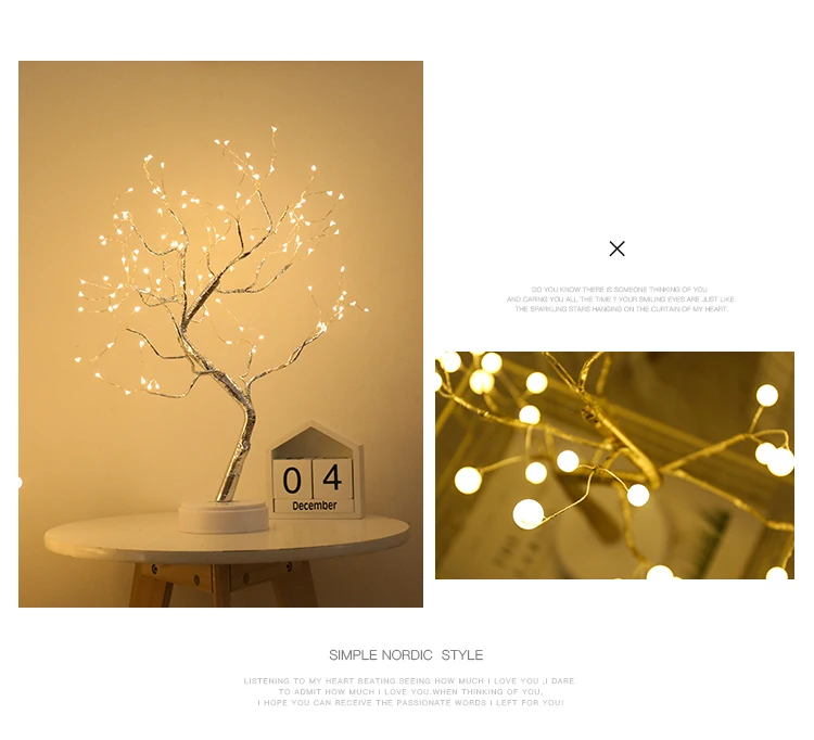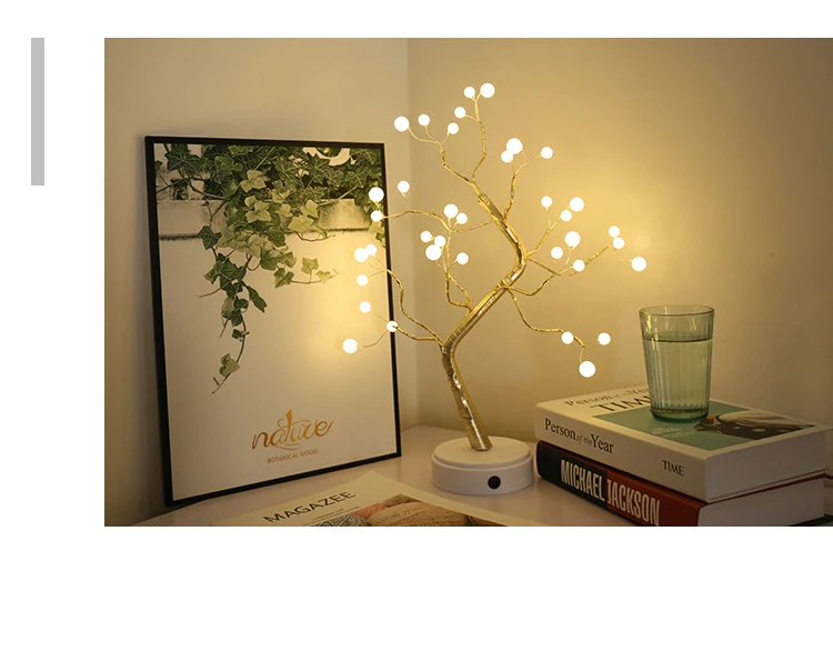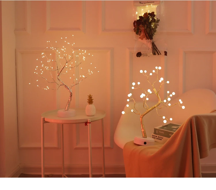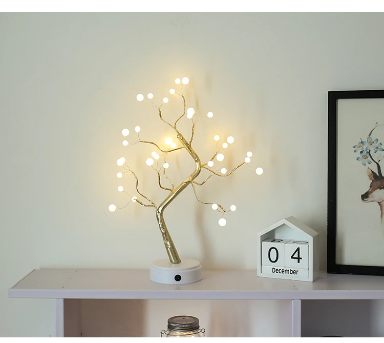 Светодиодный светильник в форме дерева из медной проволоки, ночник с аккумулятором, USB, светящаяся лампа для дерева, сенсорный выключатель, настольная лампа с управлением, домашний декор
