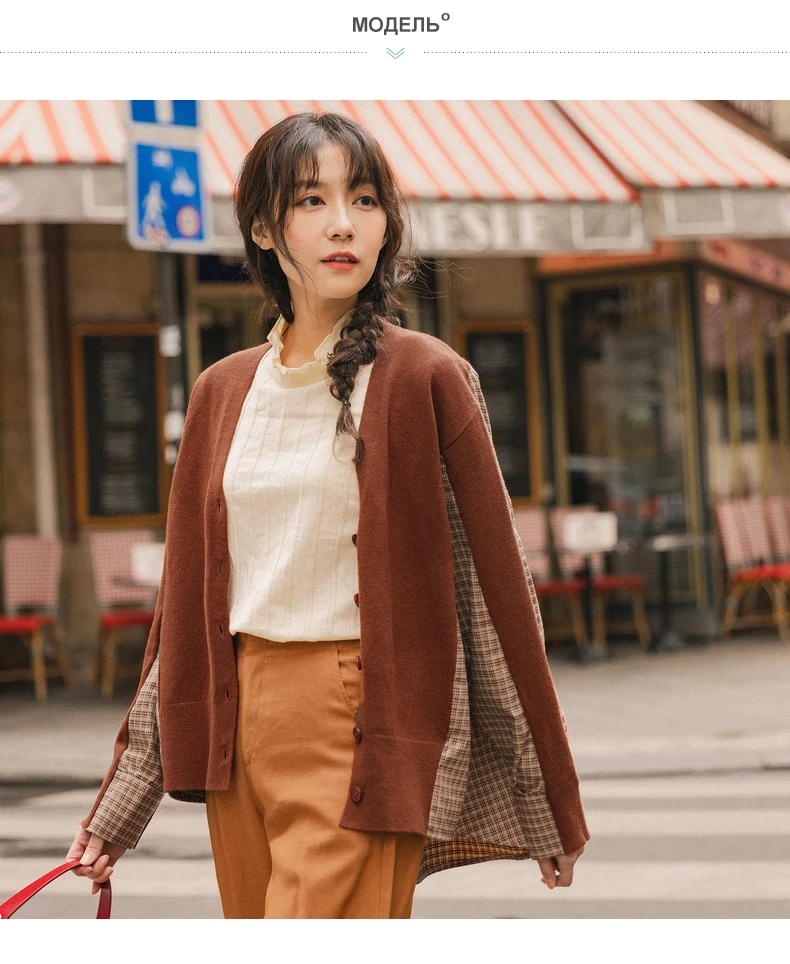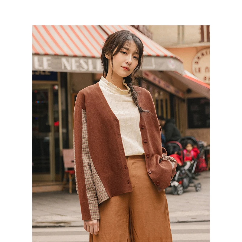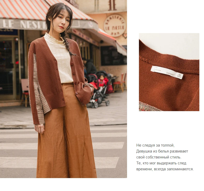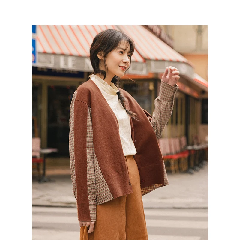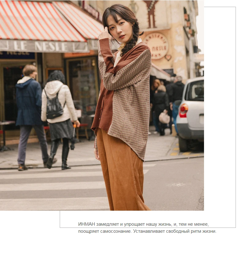 INMAN, осень 2020, Новое поступление, элегантный клетчатый кардиган с v-образным вырезом, свитер в стиле пэчворк