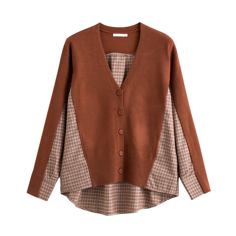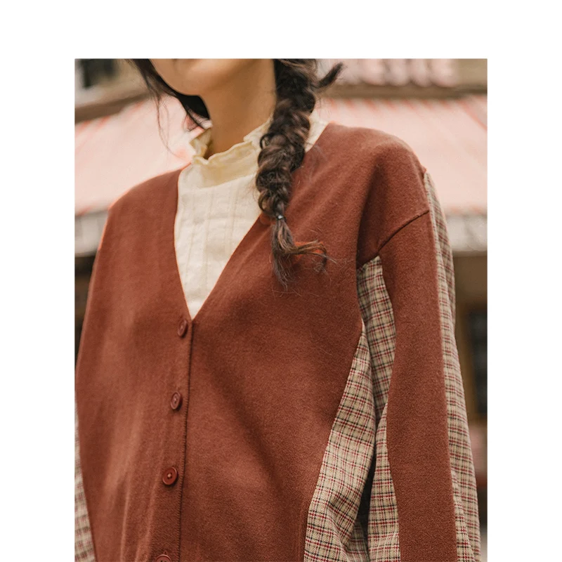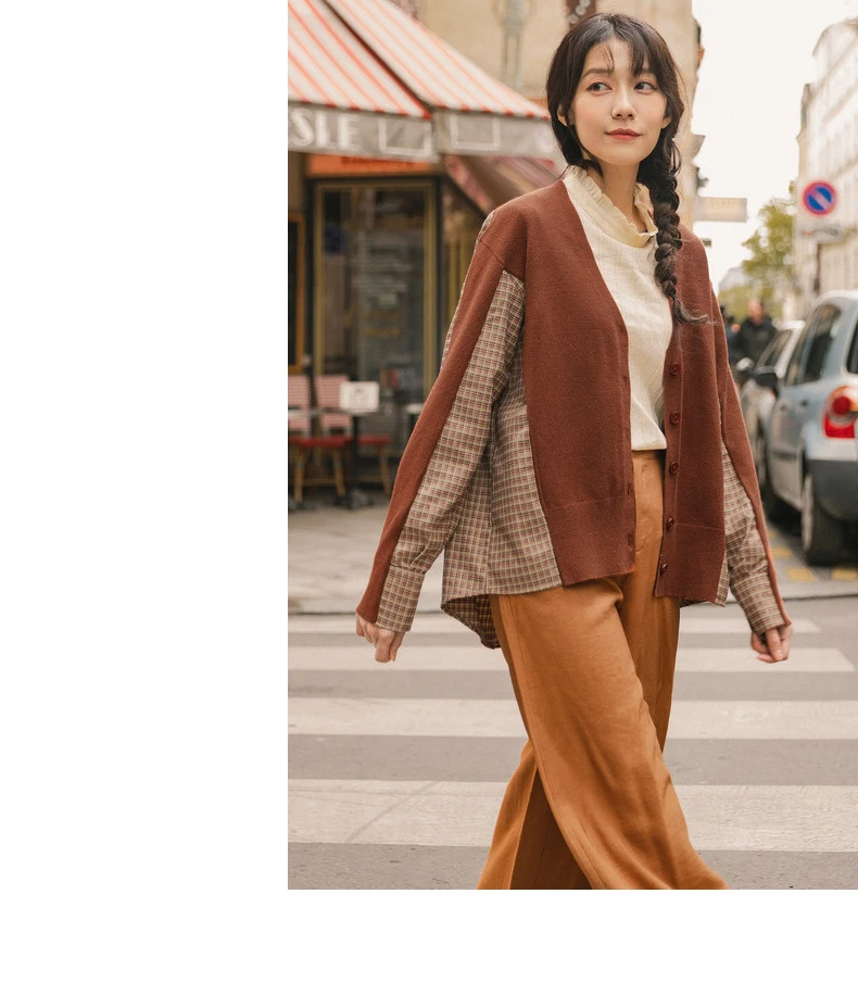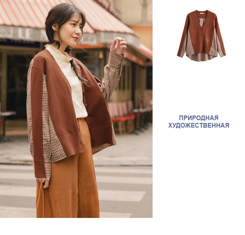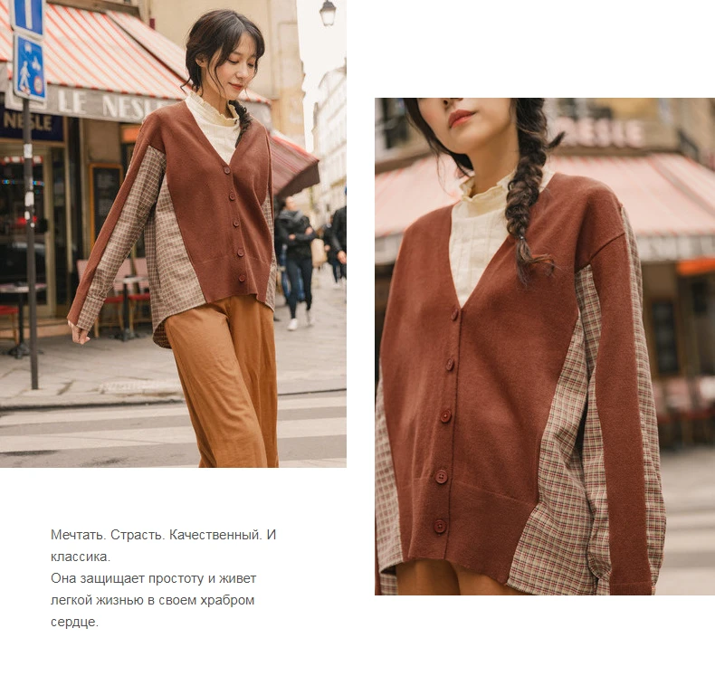 INMAN, осень 2020, Новое поступление, элегантный клетчатый кардиган с v-образным вырезом, свитер в стиле пэчворк