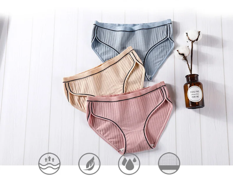 Трусы женские хлопковые, 3 шт.Лот, антибактериальные, однотонные