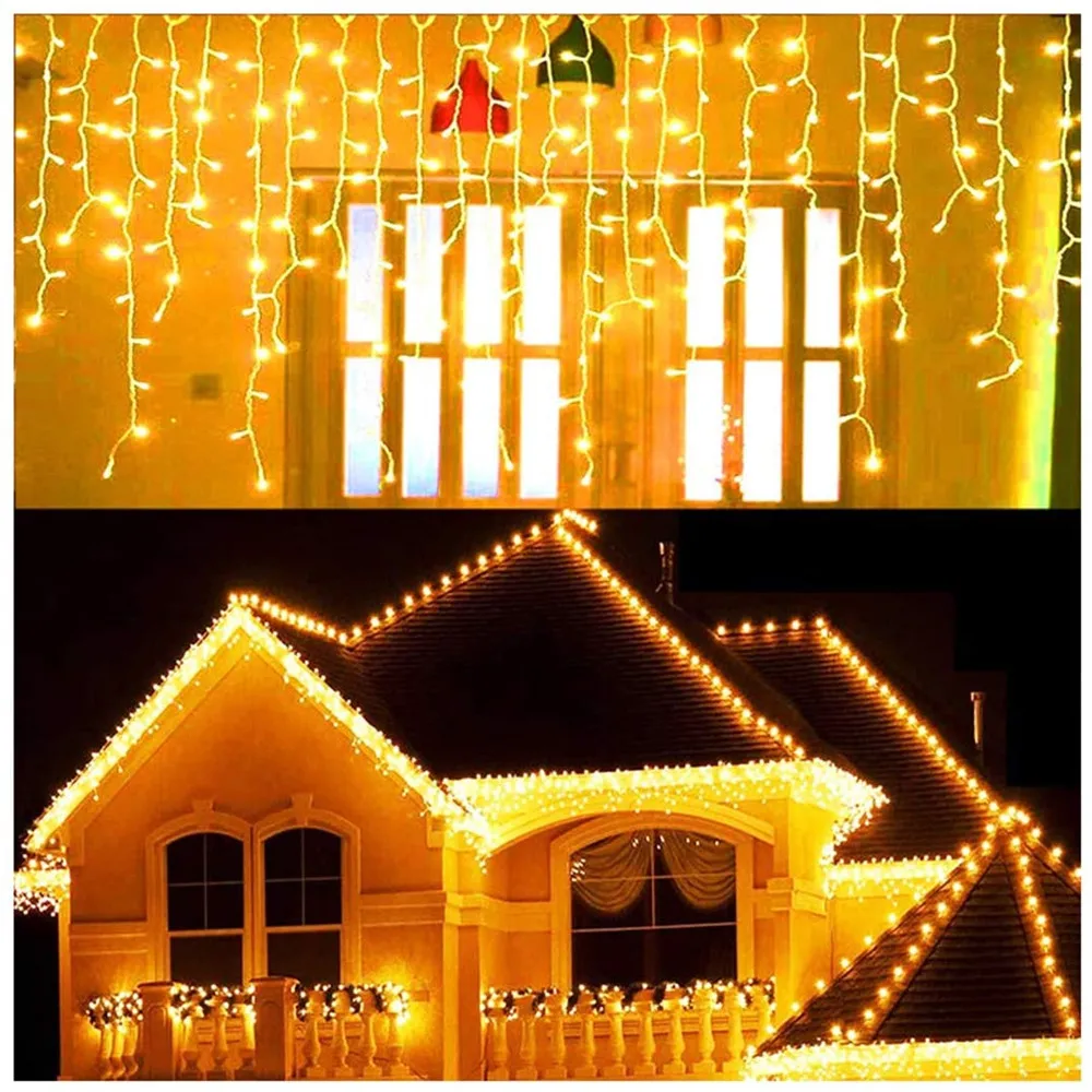 Рождественская светодиодная гирлянда-занавеска на окно, Сказочная Гирлянда-сосулька, 5 м, 96 светодиодов, свисающая на 0,4-0,6 м, уличное праздничное светодиодное украшение для вечеринки