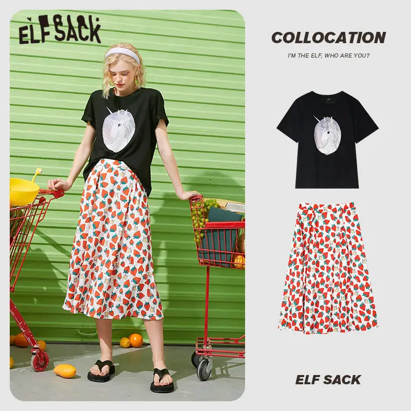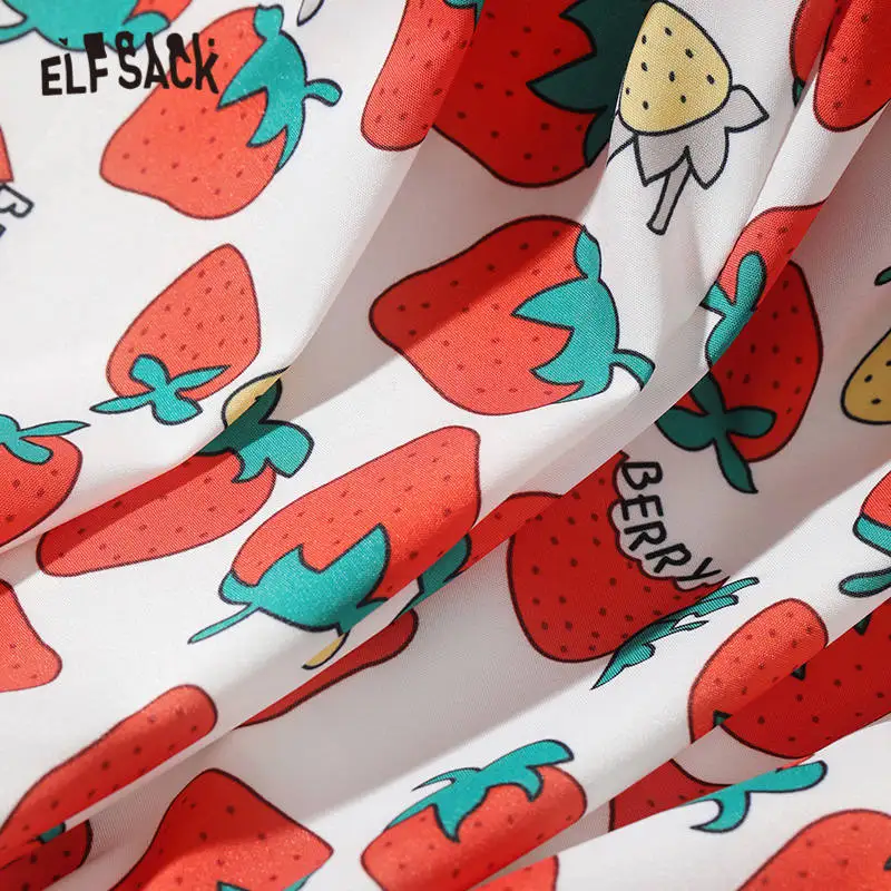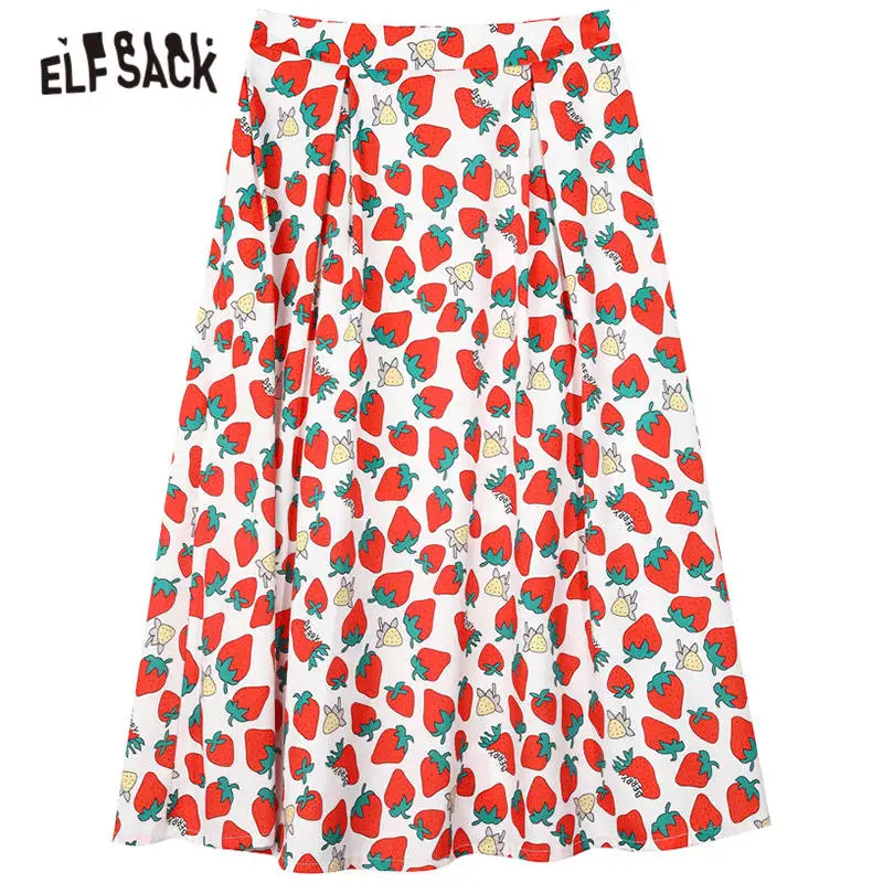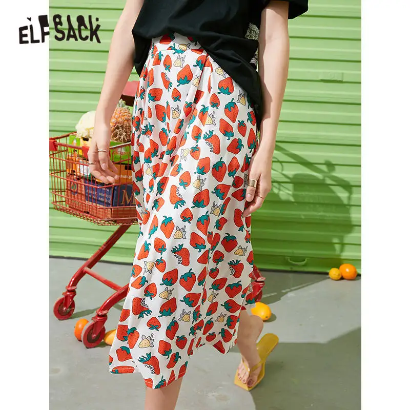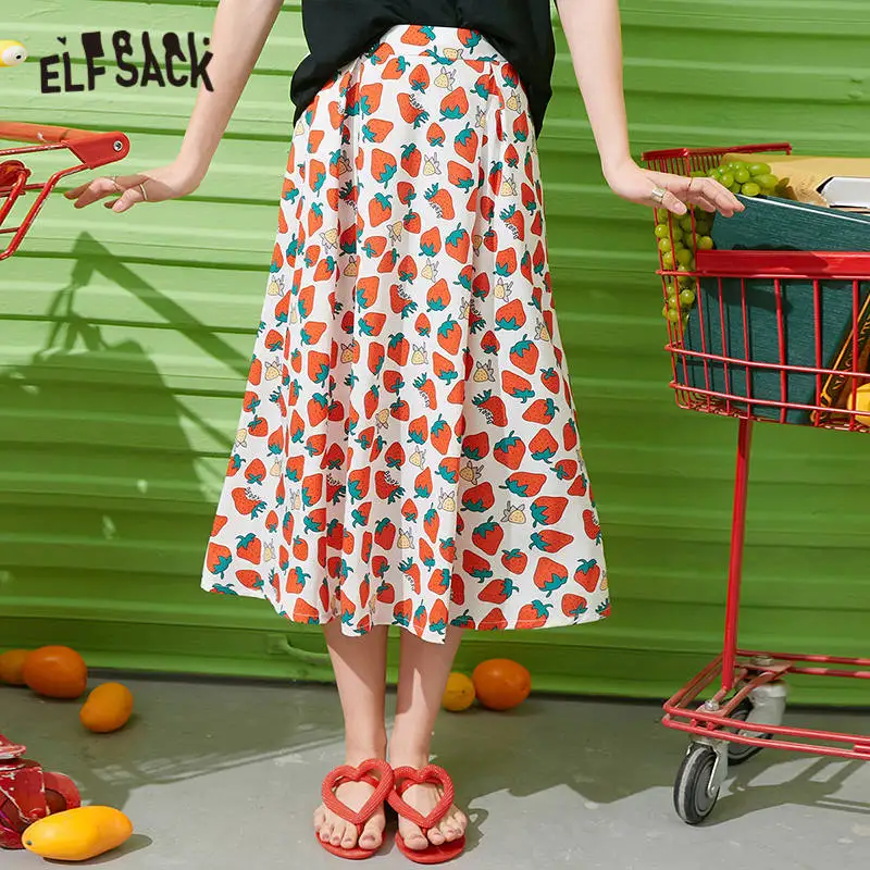 Женская шифоновая юбка ELFSACK, повседневная эластичная юбка трапециевидной формы с высокой талией и принтом клубники, лето 2020
