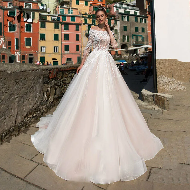 Платье свадебное с длинными рукавами и открытыми плечами, 2022