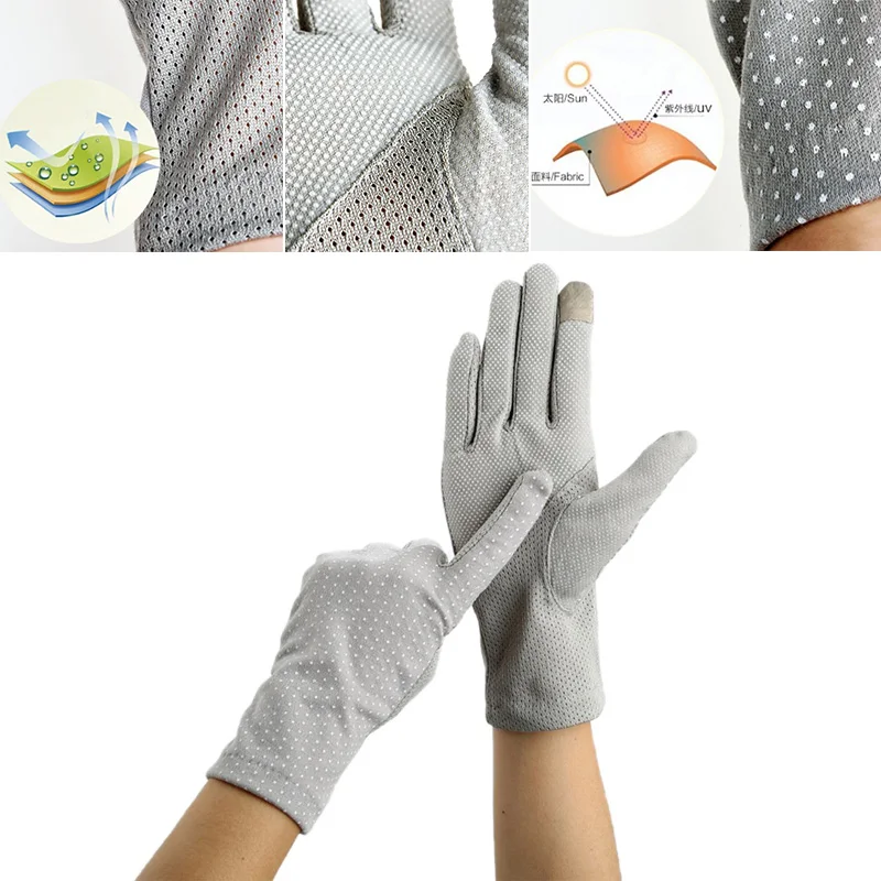 Весенние женские тонкие хлопковые перчатки для сенсорного экрана, кружевные противоскользящие перчатки для езды на автомобиле с защитой от УФ-лучей