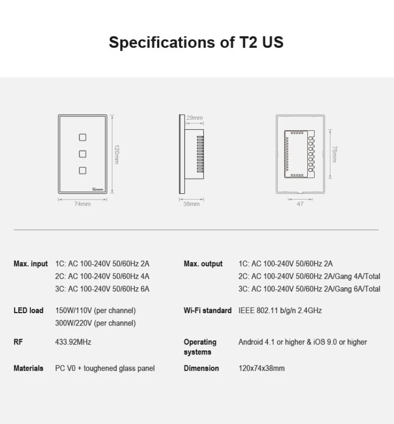 Коммутатор SONOFF T2 T3, Wi-Fi, панель eWeLink, приложение США, беспроводной модуль автоматизации умного дома, голосовой переключатель Google Home, Alexa