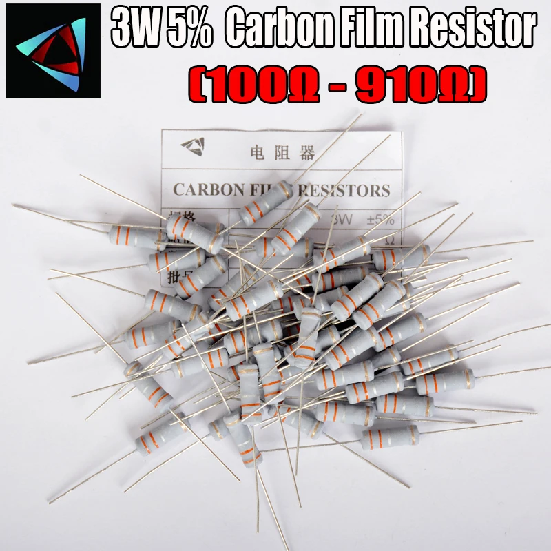 20 штук 3 Вт угольный осажденный резистор 5% 1R 1 м 100R 120 150 180 200 220 240 270 300 330 360 390 430 470 510 560 680 750 820 910 Ом